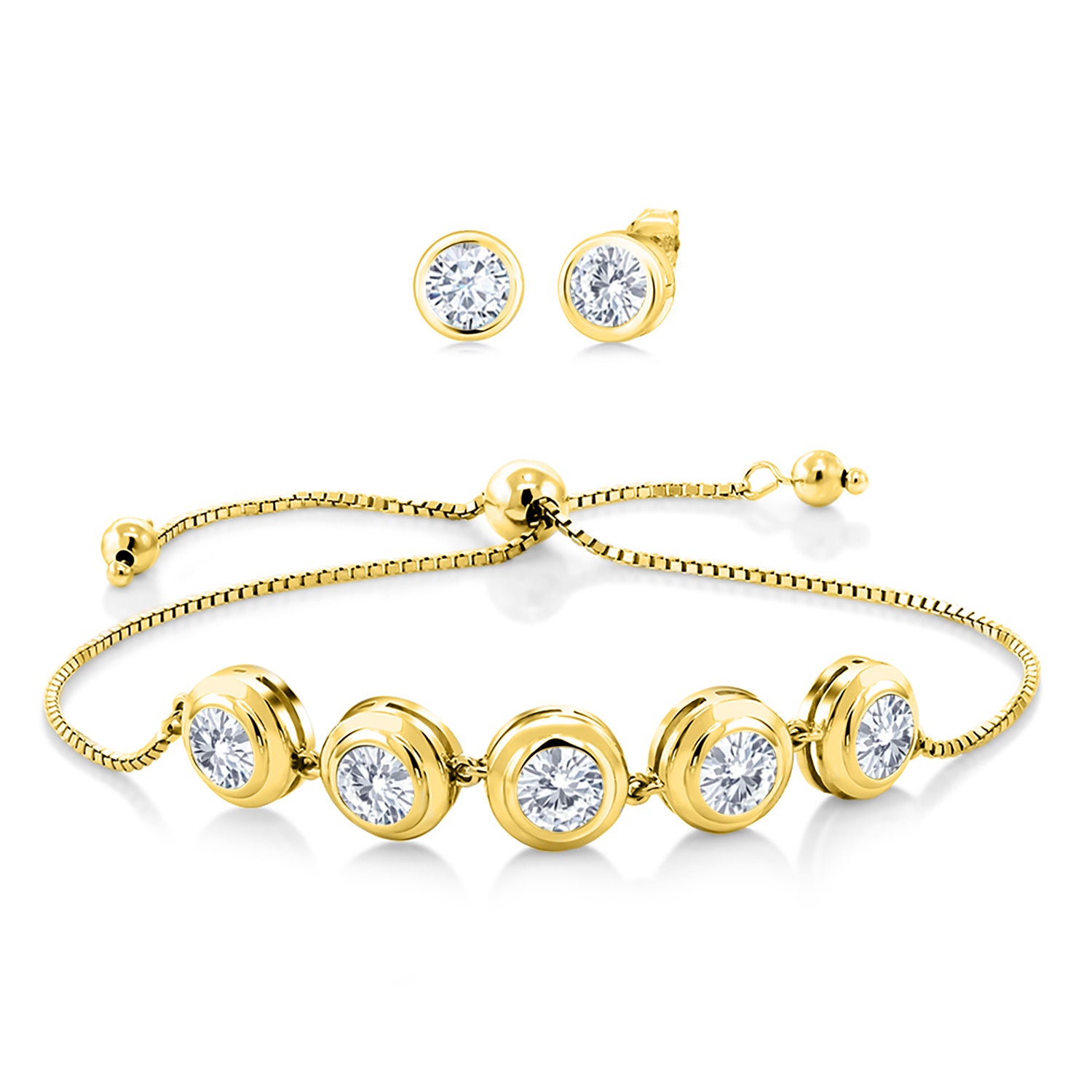 18K Yellow Gold Plated Silver White Moissanite Tennis Bracelet For Women (18.00 Cttw, Round 5MM, 7.25 Inch)