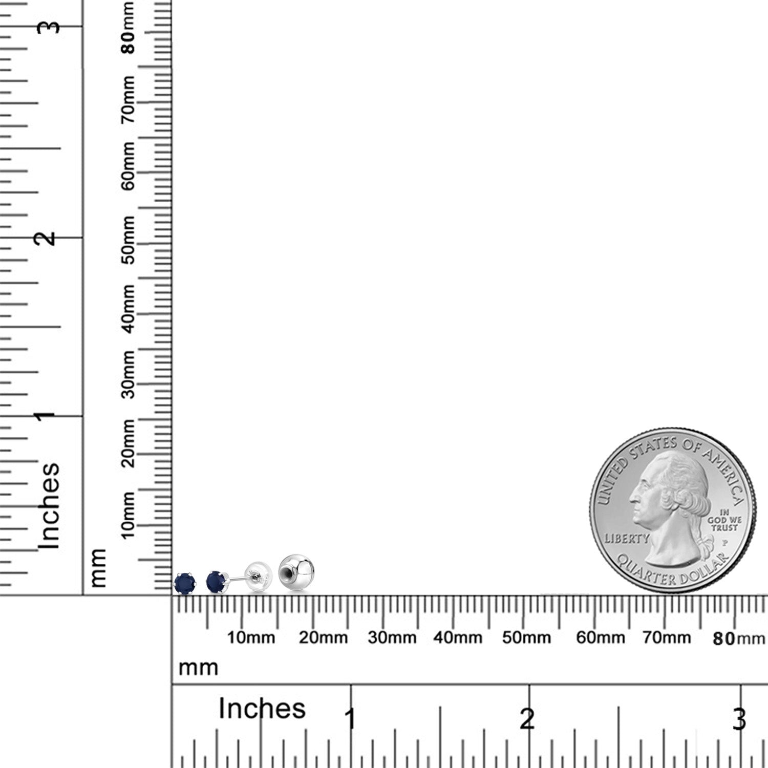 Blue Sapphire Platinum Stud Earrings For Women Men | 0.34 Cttw | Gemstone September Birthstone | Round 3MM