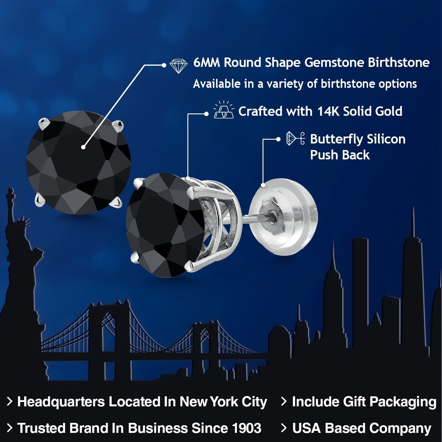 2.30 Cttw Round 6MM Black Sapphire 14K White Gold Stud Earrings with Comfort Back | Gold Earrings For Women Men