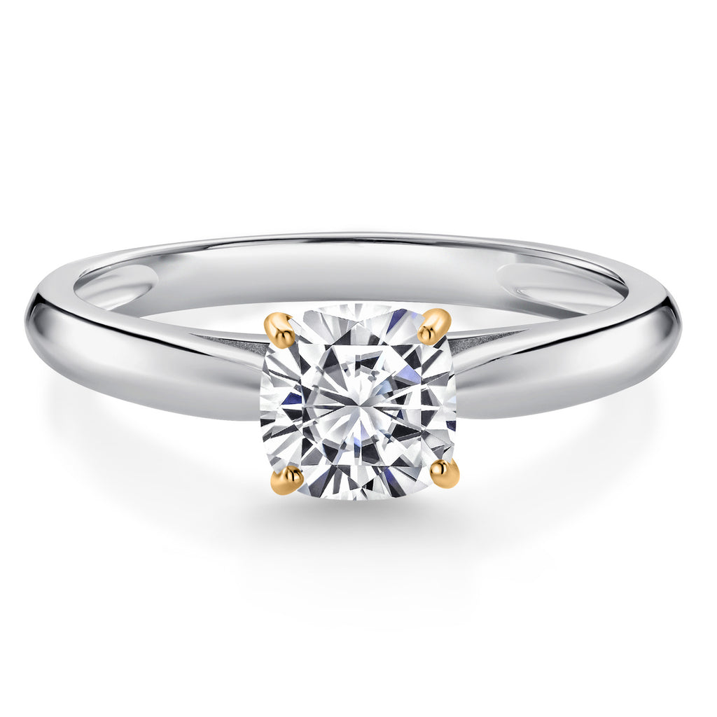 2-Tone Engagement Ring For Women | 925 Silver and 10K Yellow Gold | Gemstone Birthstone | 6MM Cushion Cut | Wedding Anniversary Promise Ring | Available In Size 5, 6, 7, 8, 9