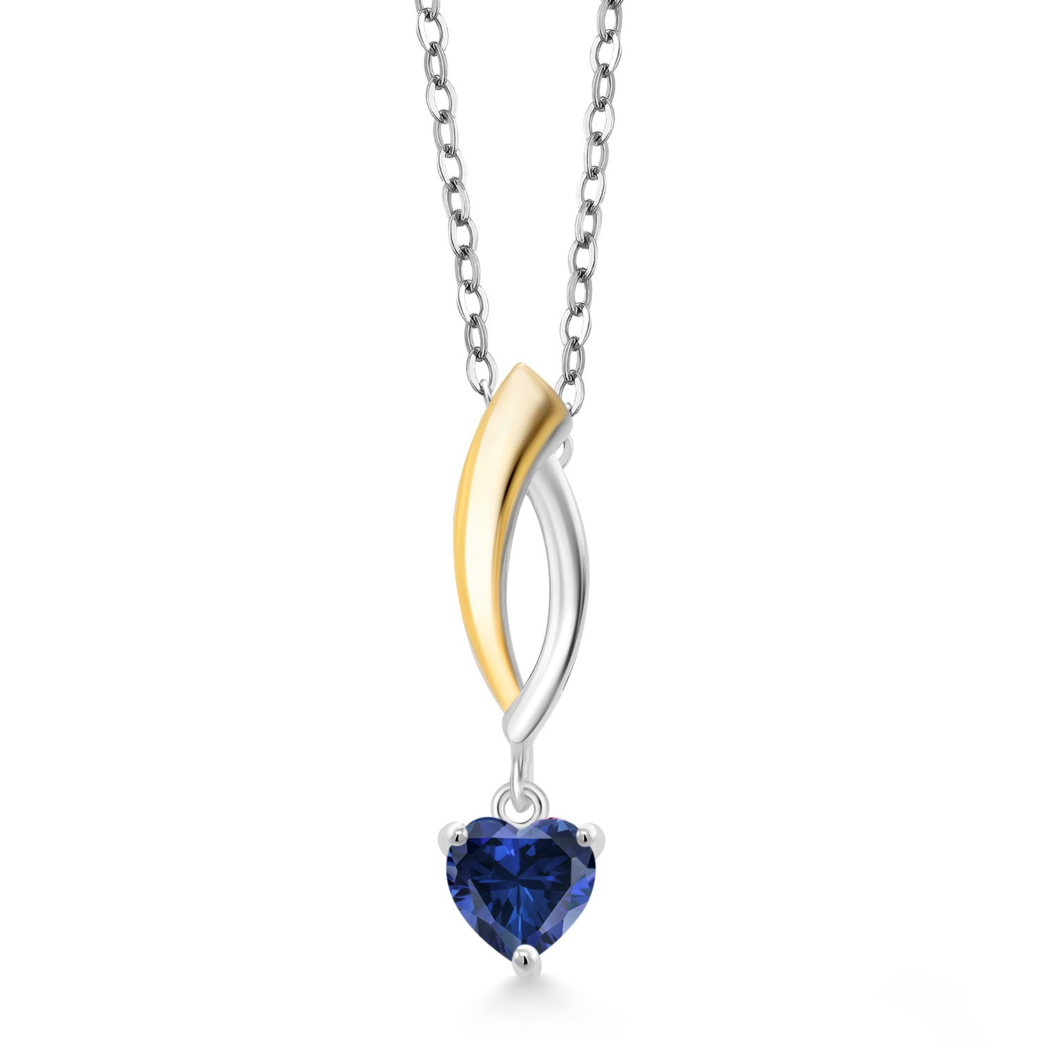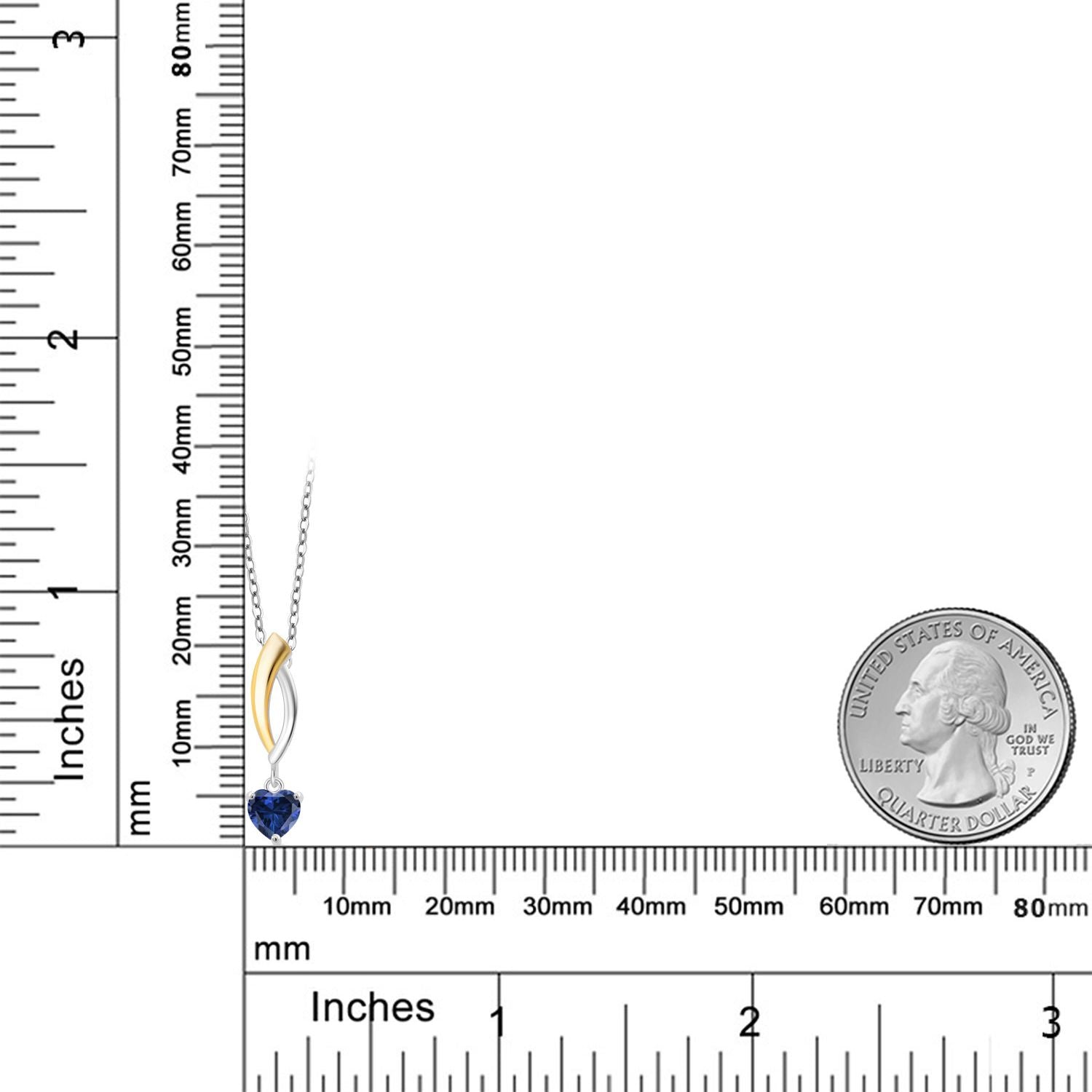 0.50 Ct Heart Shape Blue Created Sapphire 925 Silver and 10K Yellow Gold Pendant with Chain