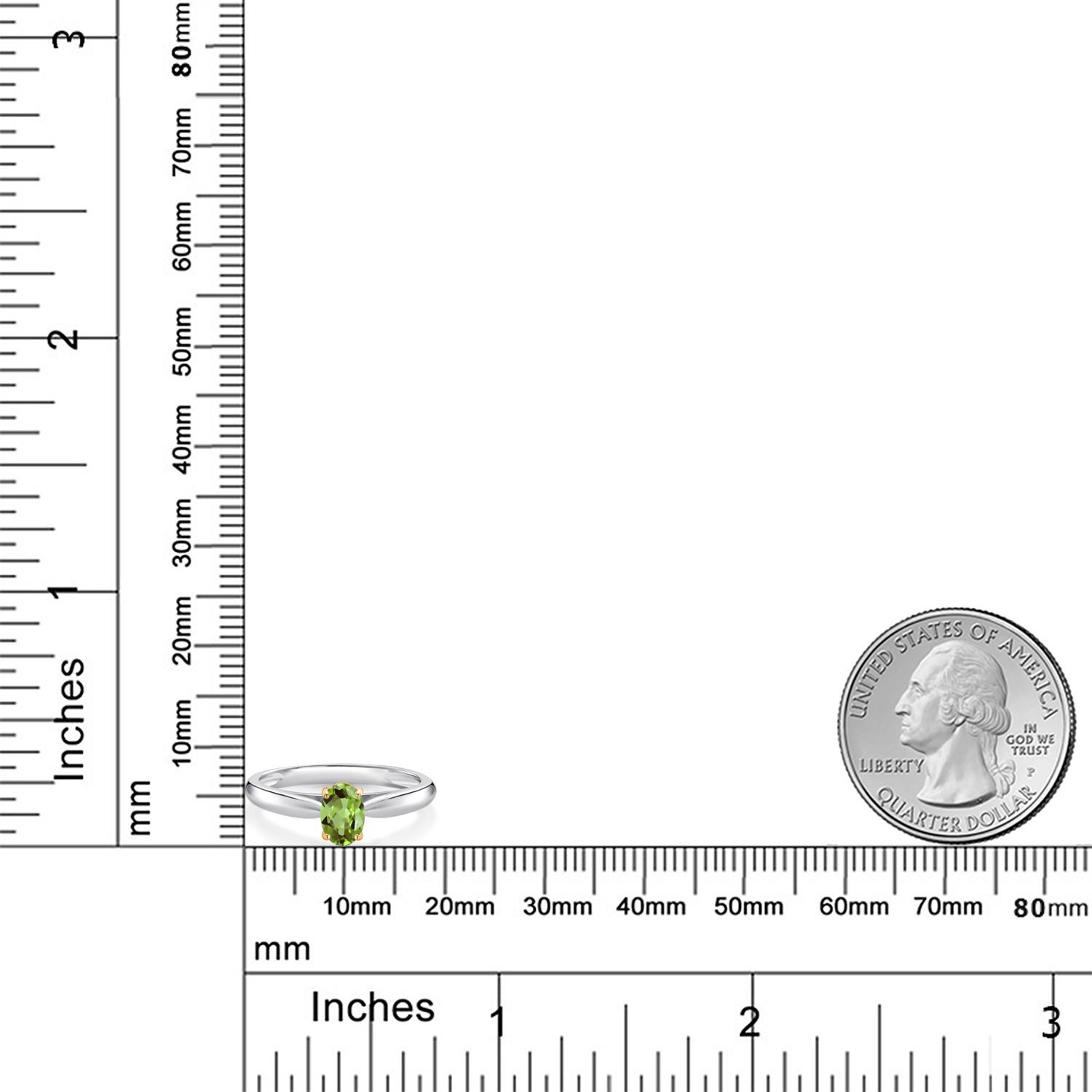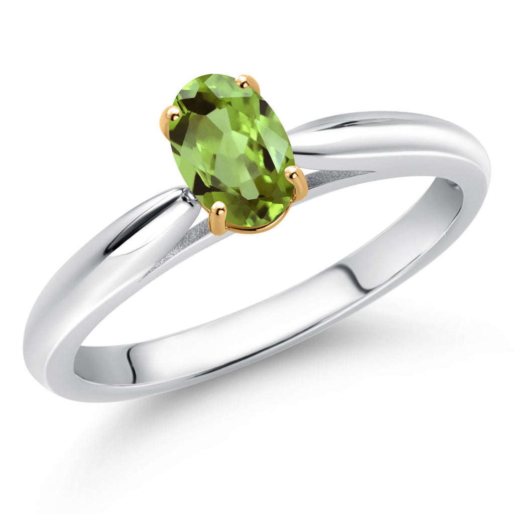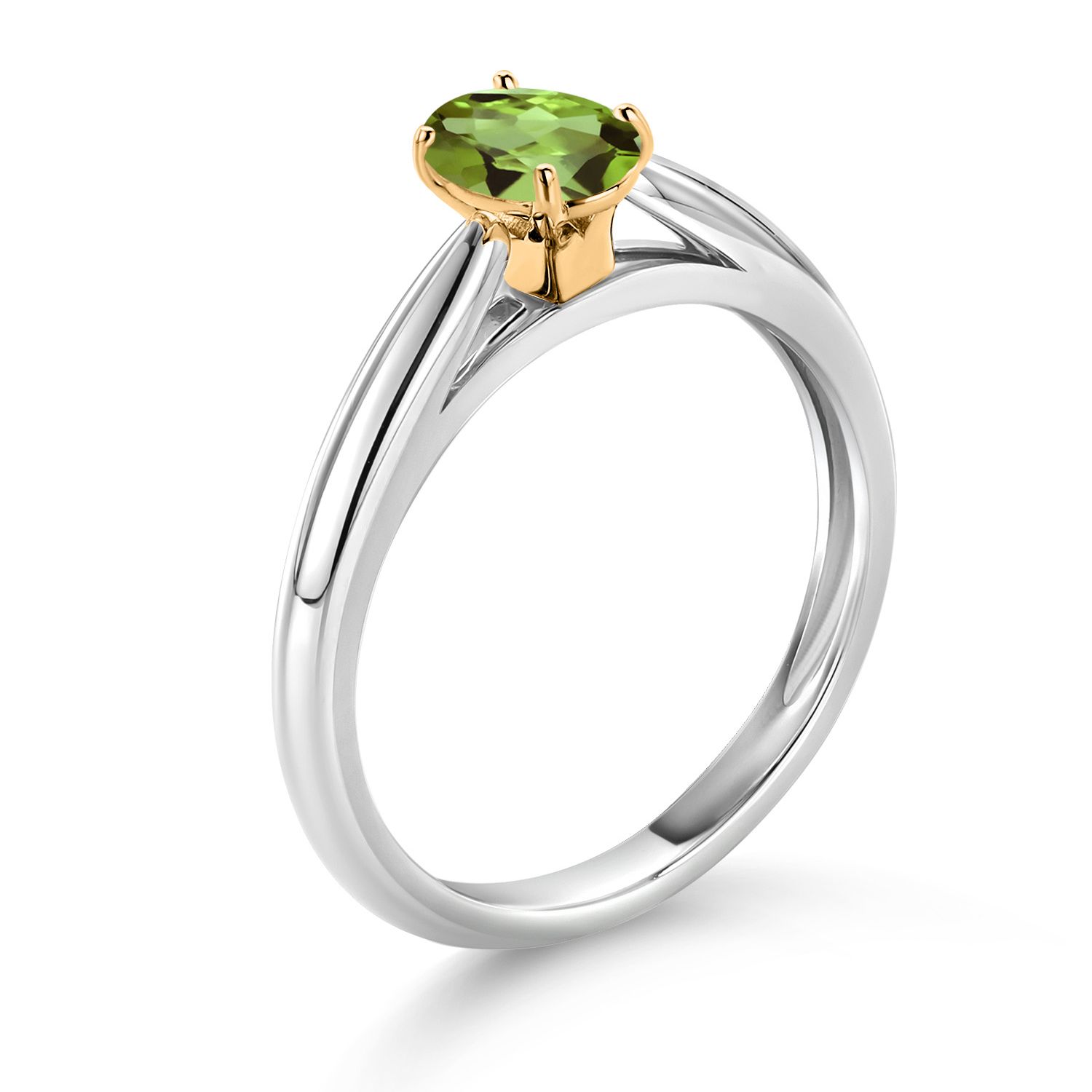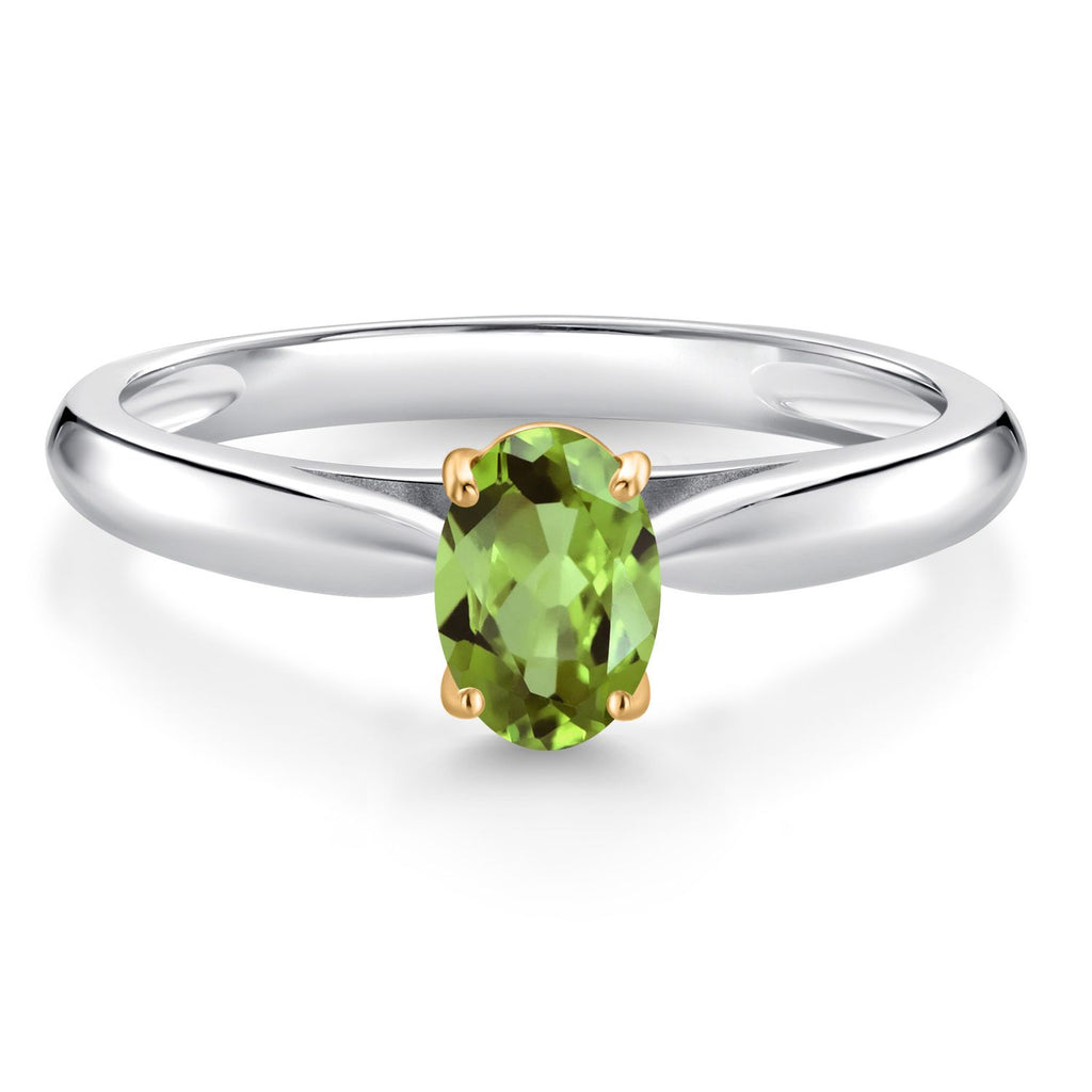 0.50 Ct Oval Green Peridot 925 Silver and 10K Yellow Gold Solitaire Engagement Ring