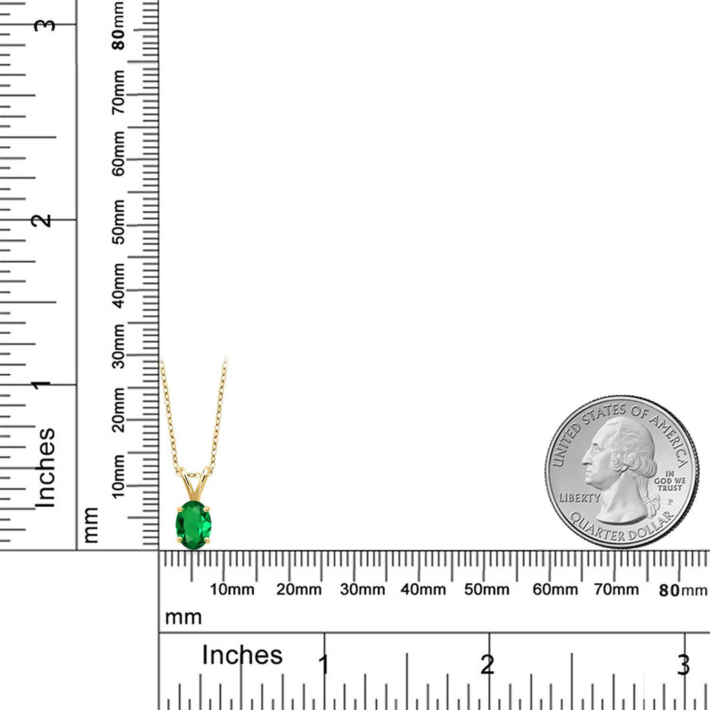 0.60 Ct Oval Green Nano Emerald 18K Yellow Gold Plated Silver Pendant with Chain