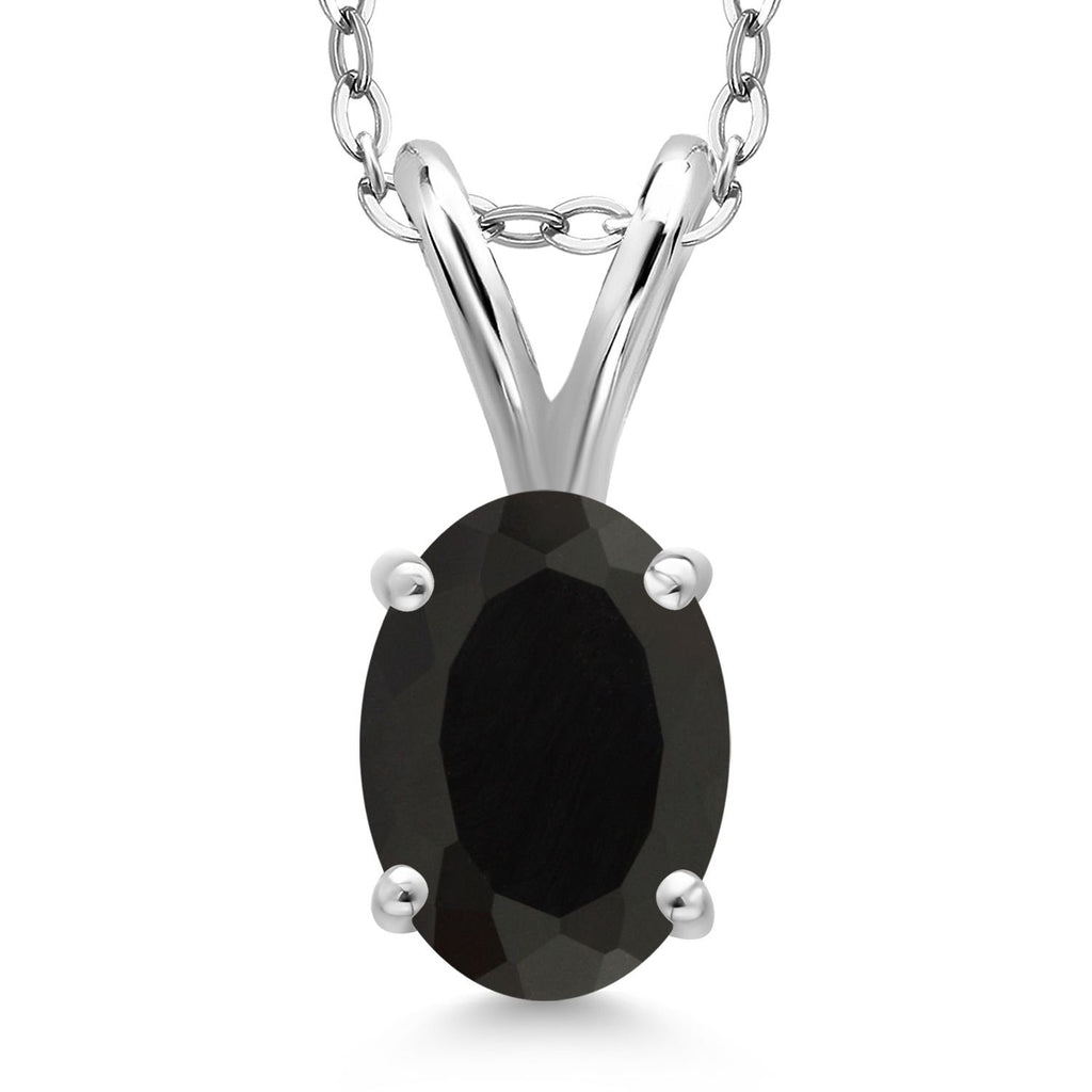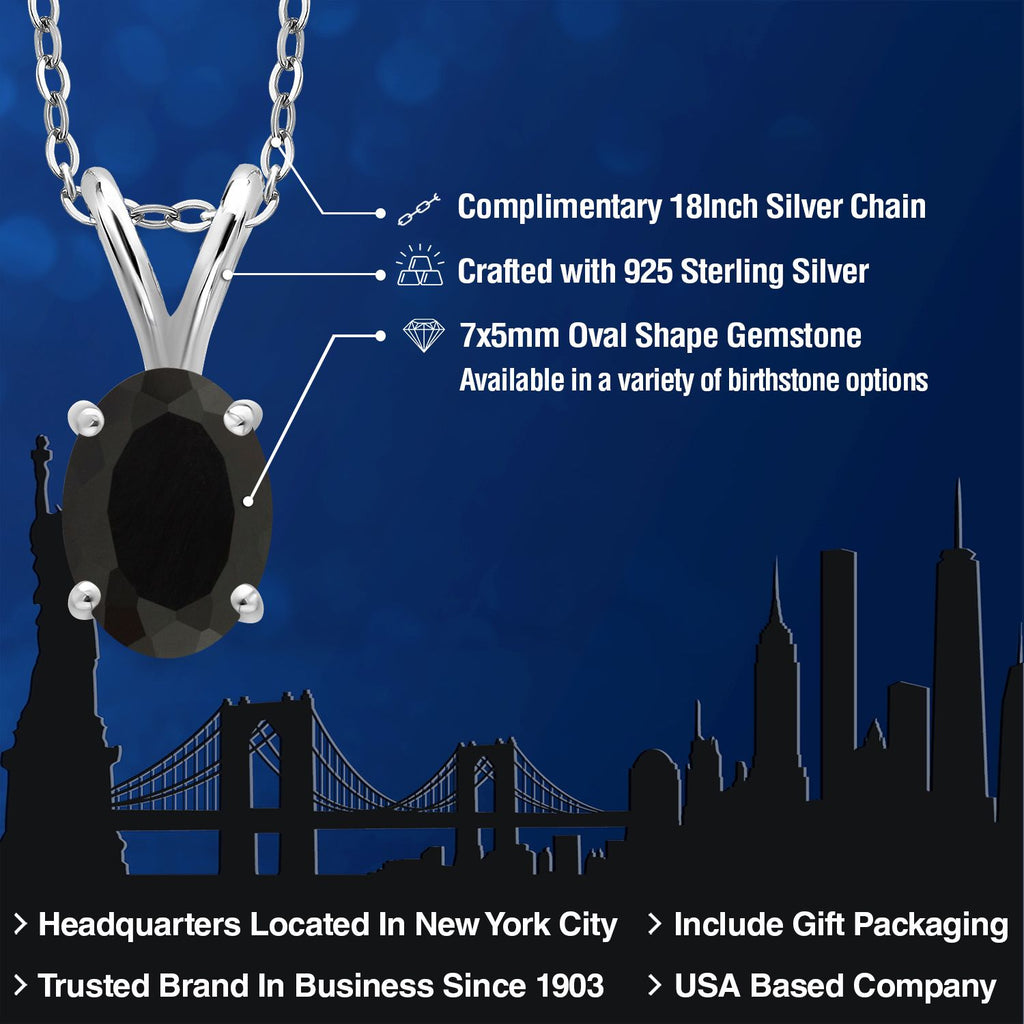 0.70 Ct Oval Black Onyx 925 Sterling Silver Pendant with Chain