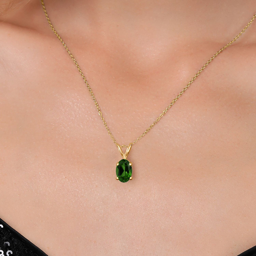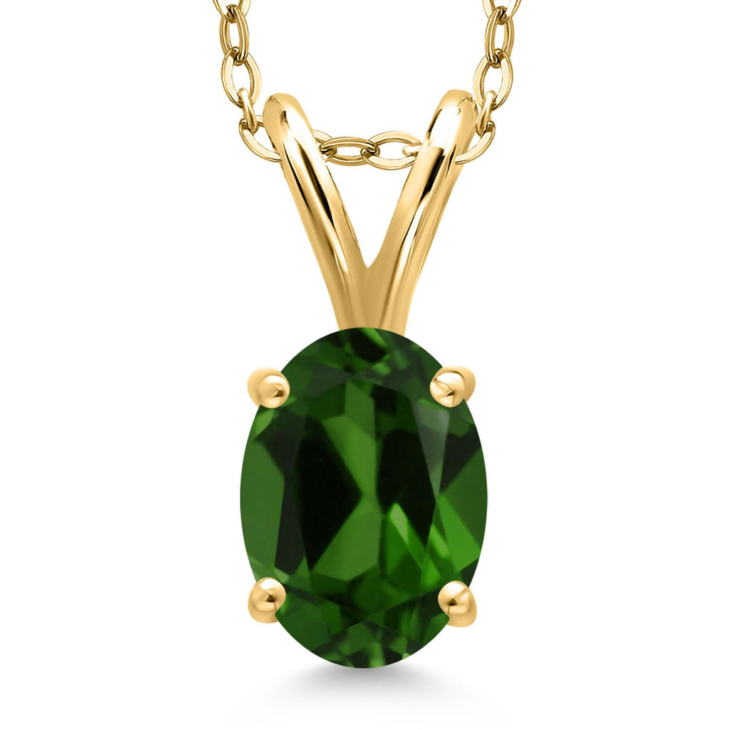 0.70 Ct Oval Green Chrome Diopside 18K Yellow Gold Plated Silver Pendant with Chain