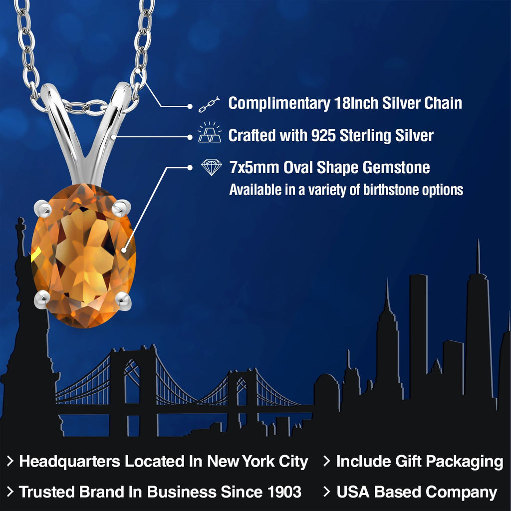 0.70 Ct Oval Orange Red Madeira Citrine 925 Sterling Silver Pendant with Chain
