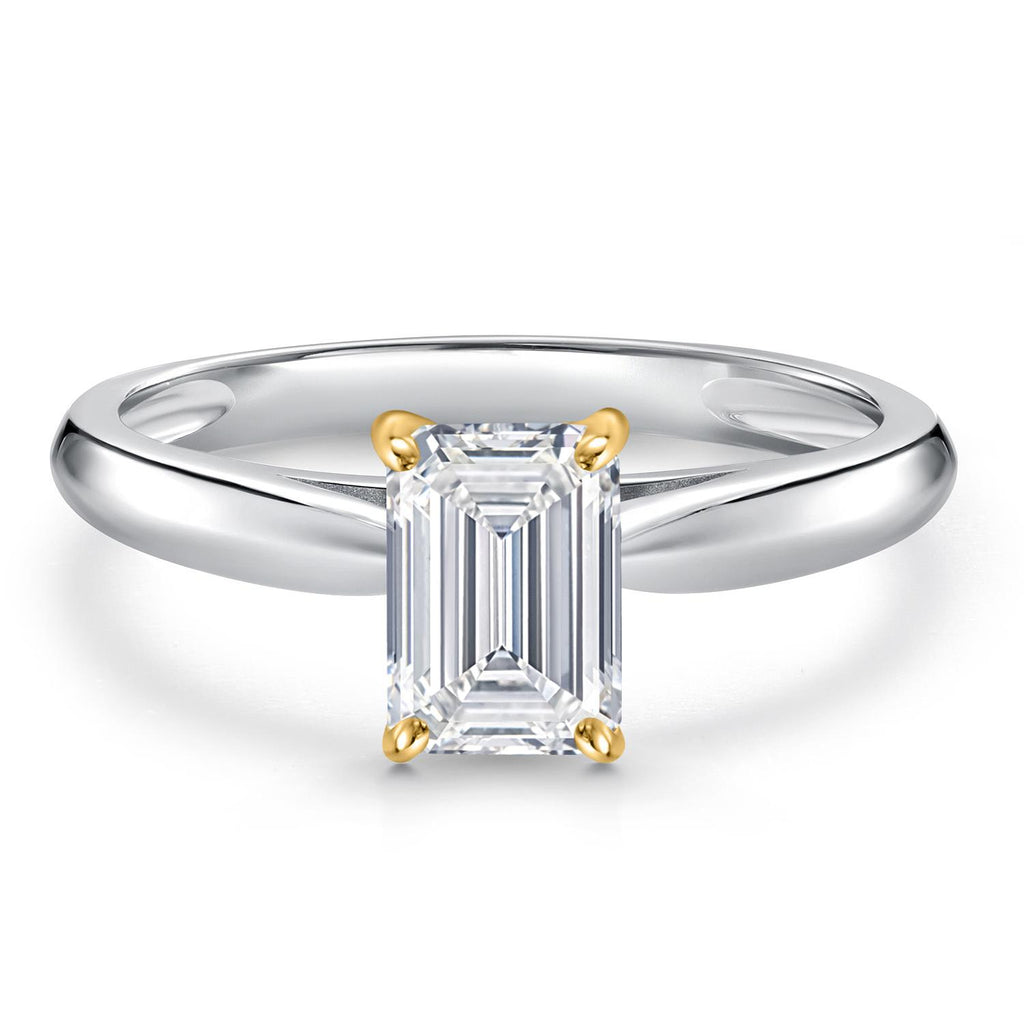 2-Tone Engagement Ring For Women | 925 Silver and 10K Yellow Gold | Gemstone Birthstone | 6MM Cushion Cut | Wedding Anniversary Promise Ring | Available In Size 5, 6, 7, 8, 9