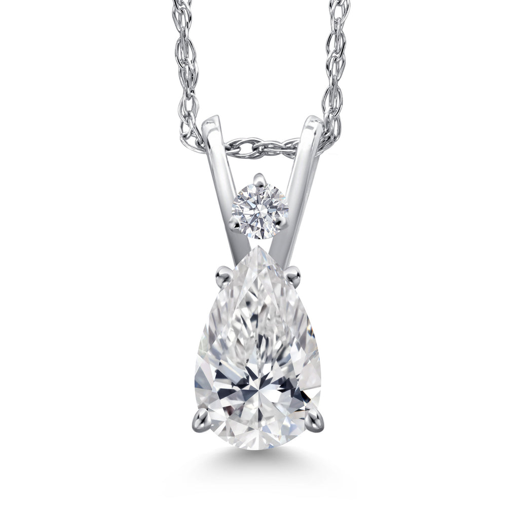 Gem Stone King 0.50 to 3 Carat 14K Gold IGI Certified Pear Shape Lab Grown Diamond Teardrop Pendant Necklace For Women | E-F | VS1-VS2 | 18 Inch Gold Chain | White Gold | 0.50 Carat - Not Certified