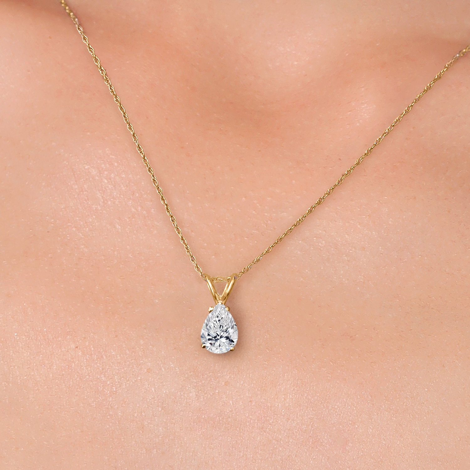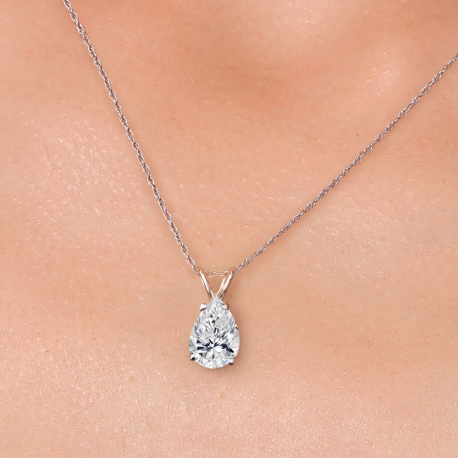 IGI CERTIFIED LAB-GROWN DIAMOND SELECTION: Featuring a dazzling IGI certified lab-grown diamond, this pendant is available in bold sizes ranging from 0.70 to 5 carats. Each pear-shaped stone is graded for E-F color and VS1-VS2 clarity, and comes with a detailed IGI certificate verifying authenticity, cut, color, and clarity. With the same optical, physical, and chemical qualities as mined diamonds, this piece delivers brilliance backed by trusted certification.