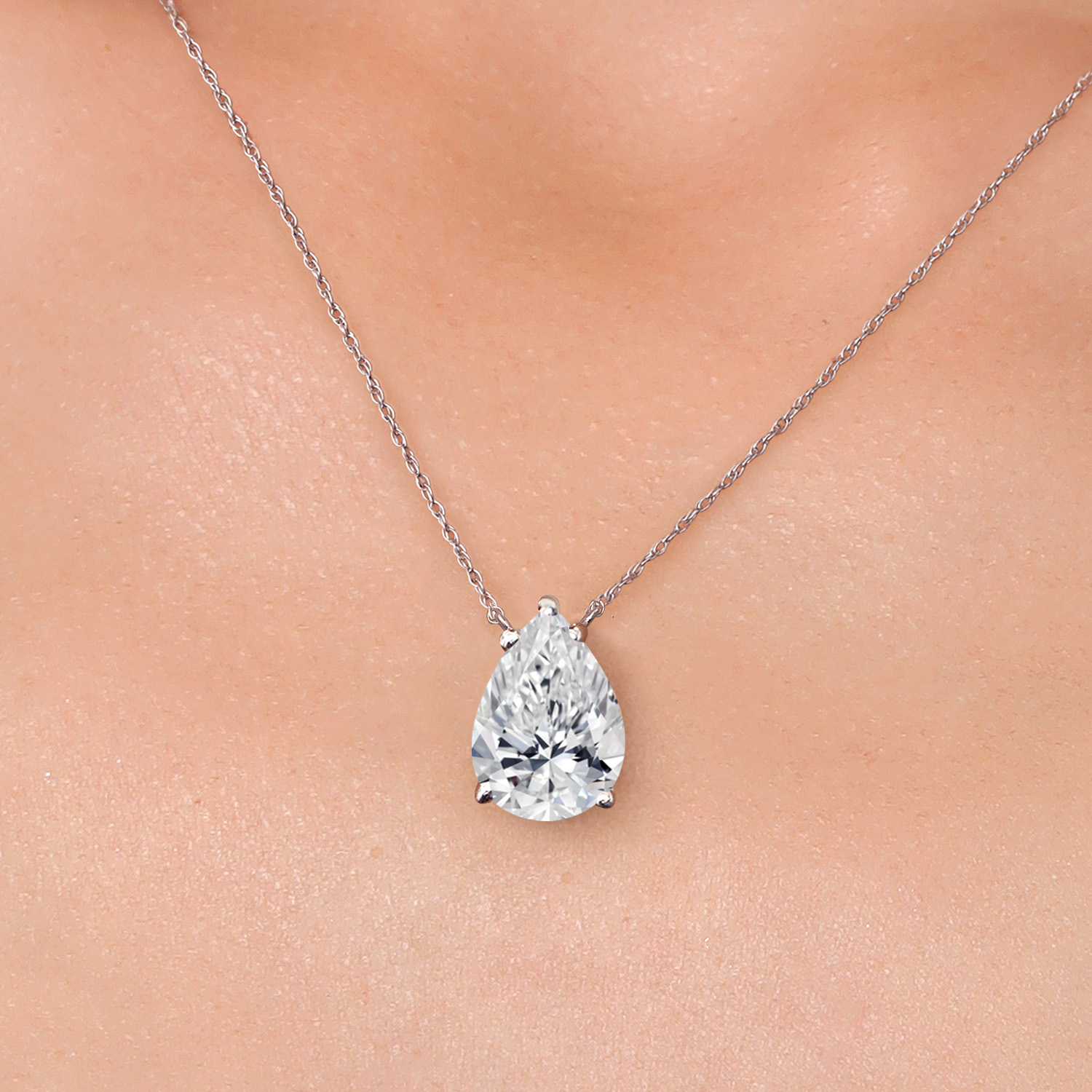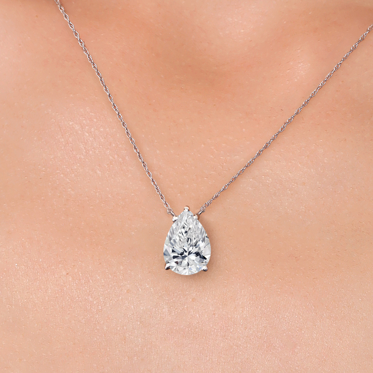 DESIGN THAT ELONGATES: The timeless teardrop silhouette visually lengthens the neckline and adds fluid movement with every step. A minimal open gallery enhances brilliance, while secure multi-prongs protect the pear through daily wear. Completed with an 18-inch 14K gold rope chain that rests at the collarbone, it shines elegantly solo or layered.