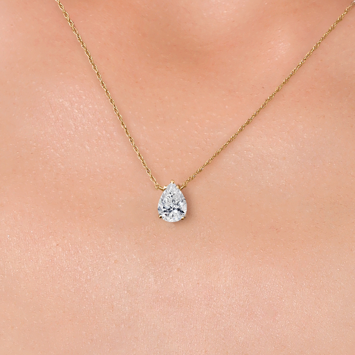 0.70 to 5 Carat Lab Grown Diamond Teardrop Pendant Necklace For Women | 14K Gold | IGI Certified | Pear Shape | E-F Color | VS1-VS2 Clarity | With 18 Inch Gold Chain