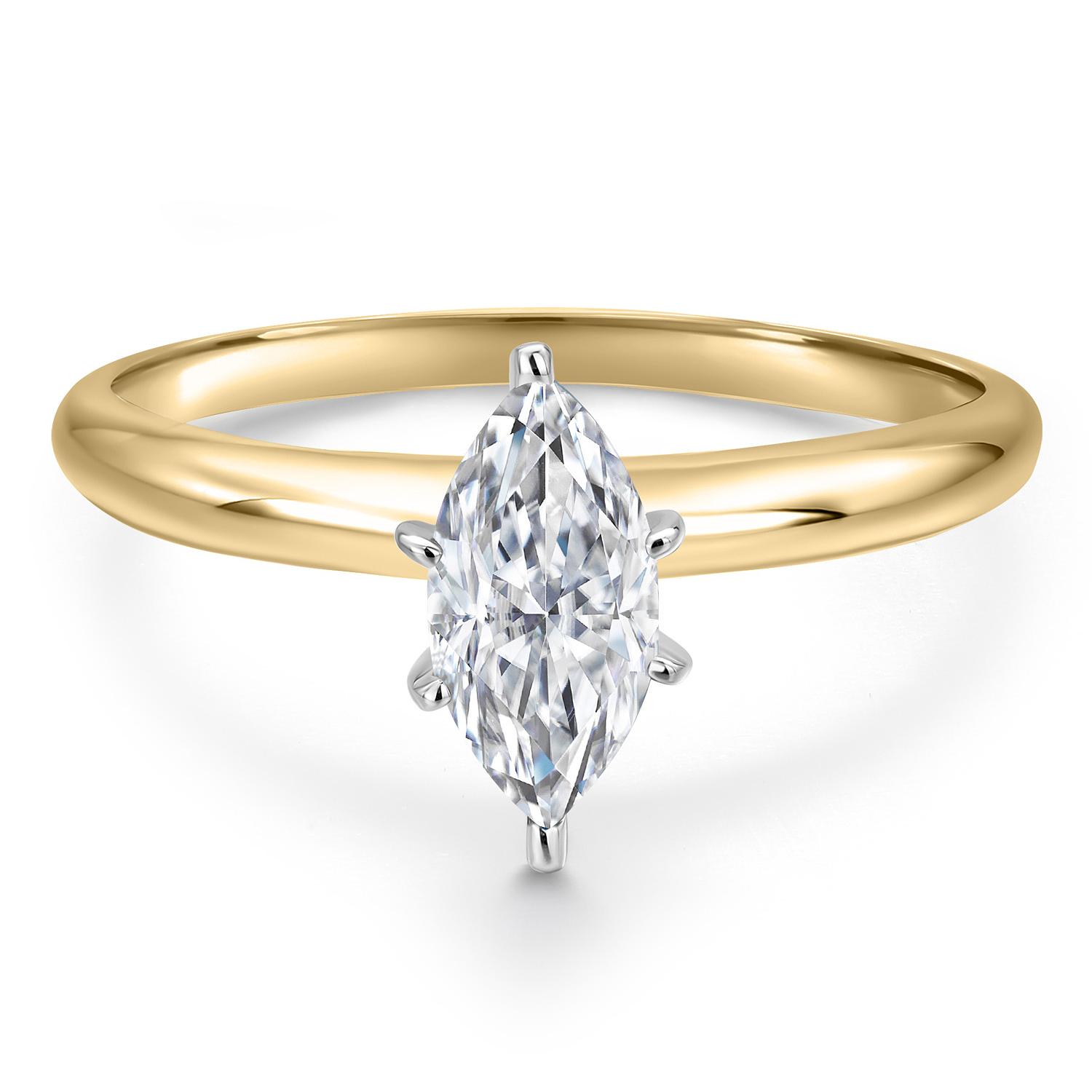 Item Info Total Carat Weight: 1 cttw Metal Type: Solid 14K Two Tone Gold Measurements: 10 x 5 mm Setting Type: 4-Prong Main Gemstone Total Carat Weight: 1.00 cttw Carat Weight: 1.00 ct each Gem Type: Lab Grown Diamond Color: E - F Clarity: VS1 - VS2 Treatment Method: Not-treated Shape: Marquise Measurements: 10x5mm Number of Stone: 1