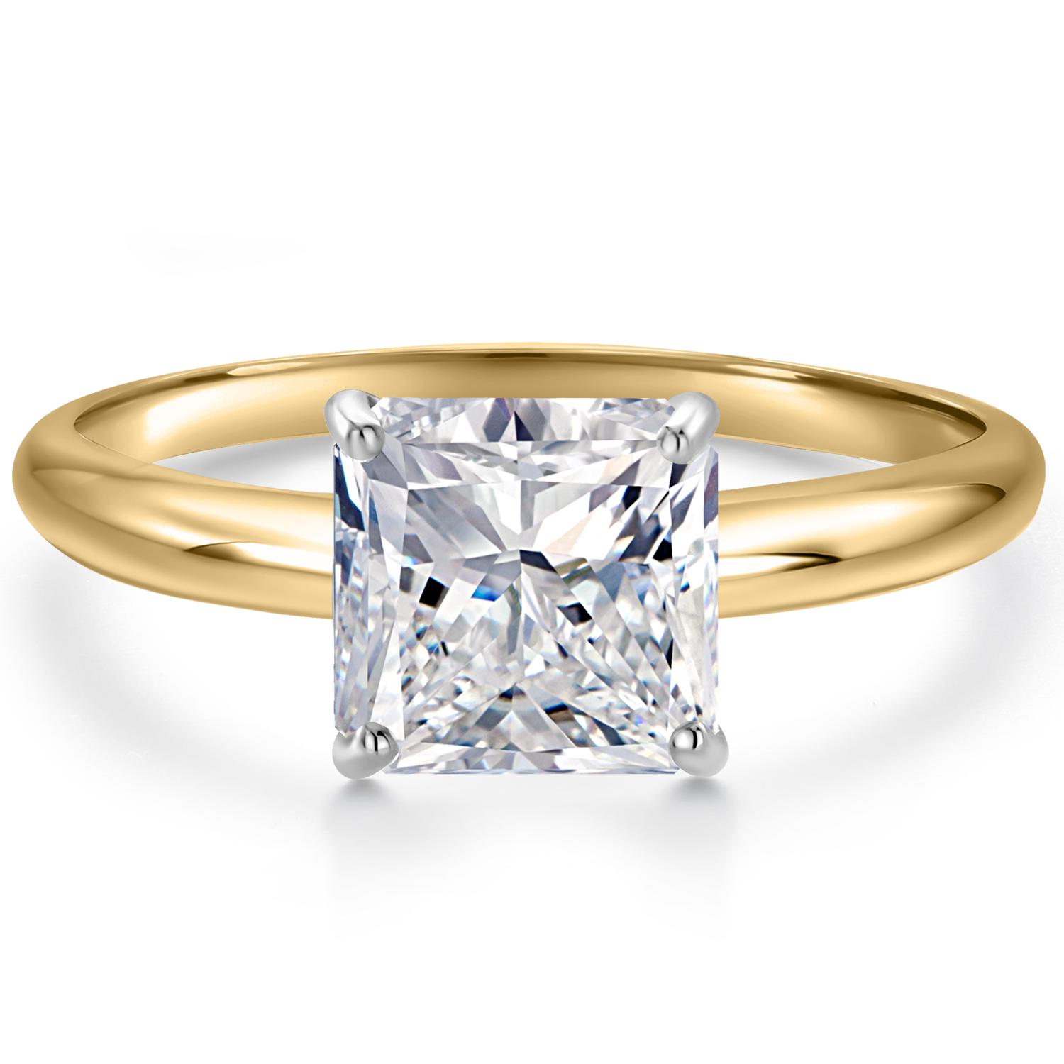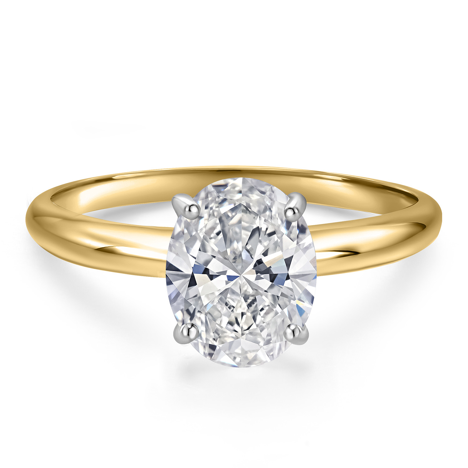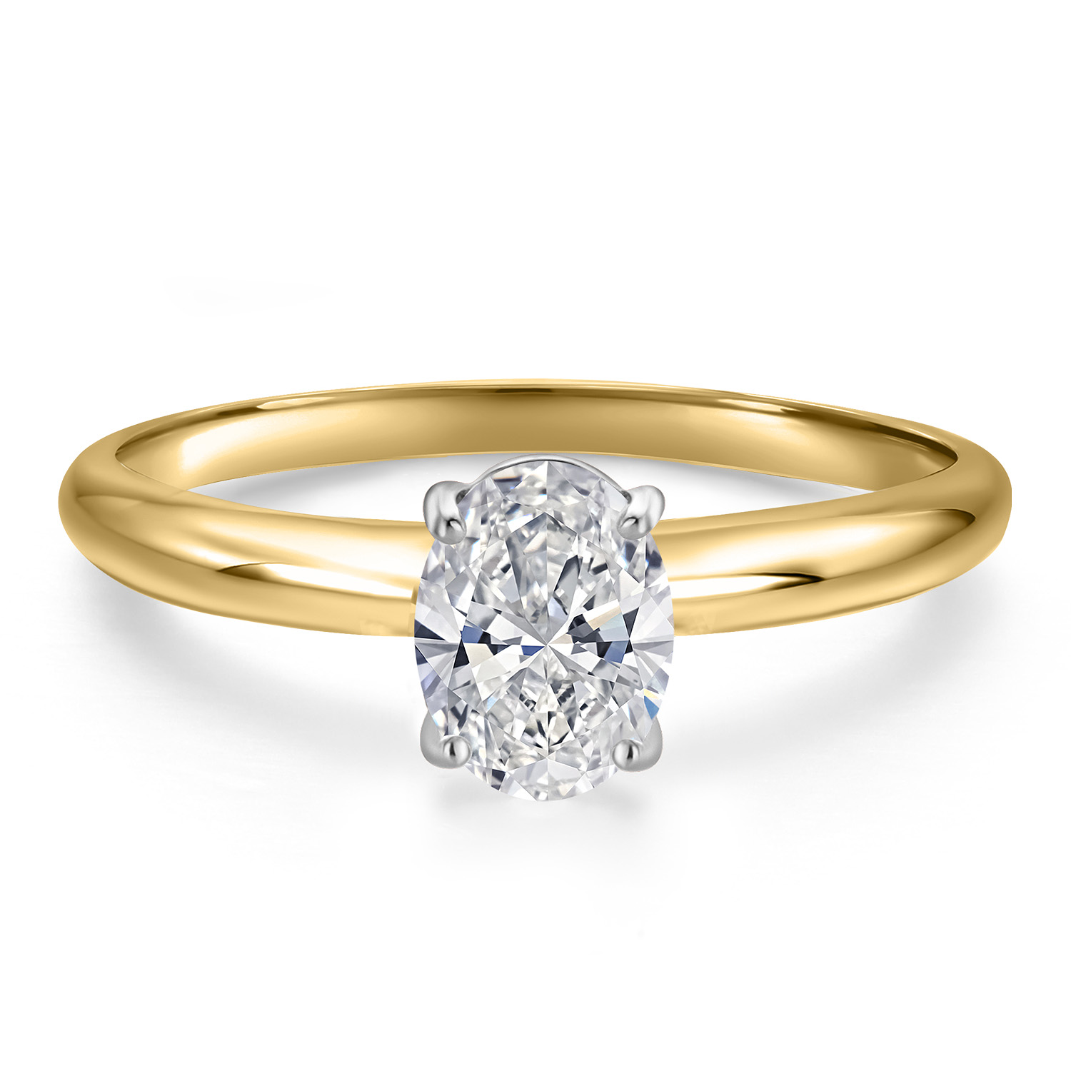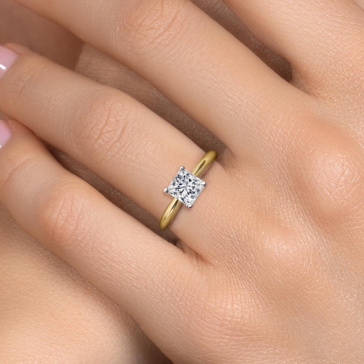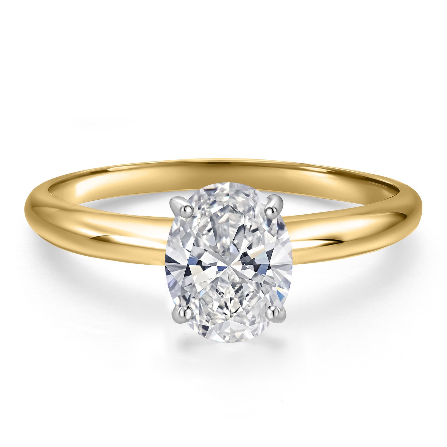LUXURIOUS 14K TWO-TONE GOLD SETTING WITH TIMELESS DESIGN: Crafted from premium 14K two-tone gold, this ring features a yellow gold band paired with a white gold head, offering a unique and stylish contrast. The yellow gold band adds warmth and classic elegance, while the white gold head enhances the diamond's brilliance. The solitaire setting is meticulously designed to prominently showcase your chosen diamond, highlighting its shape and sparkle.