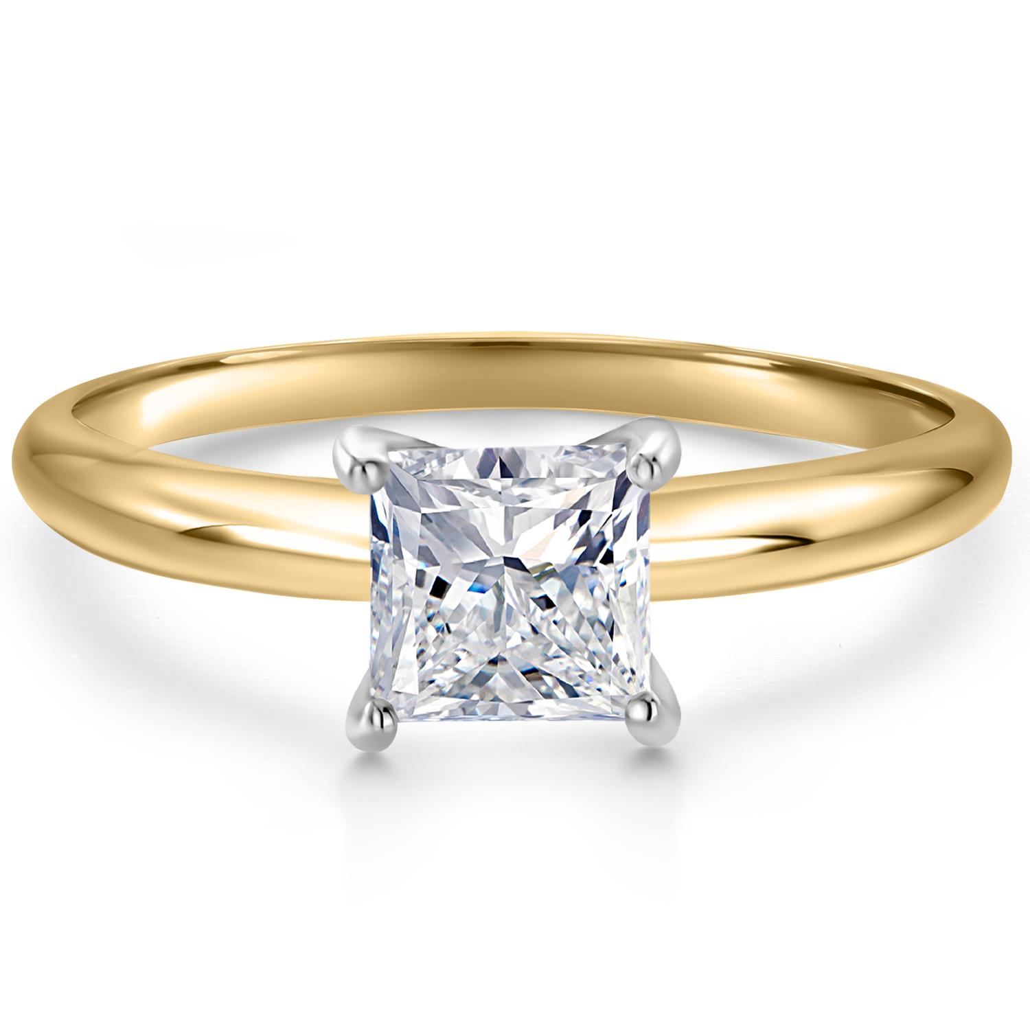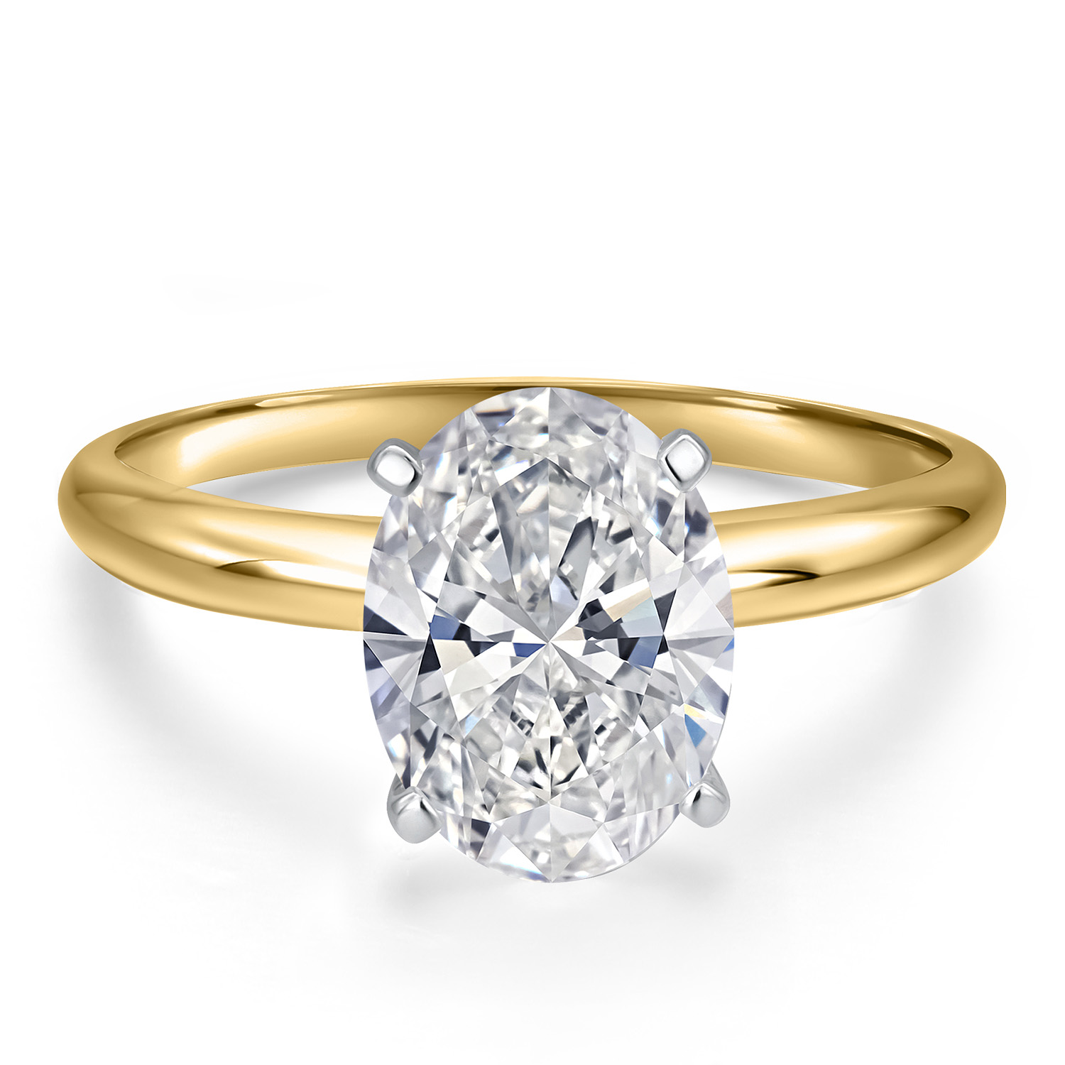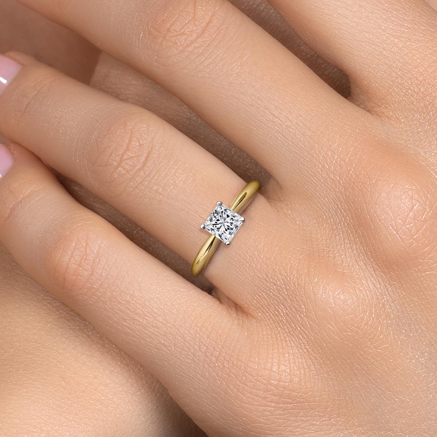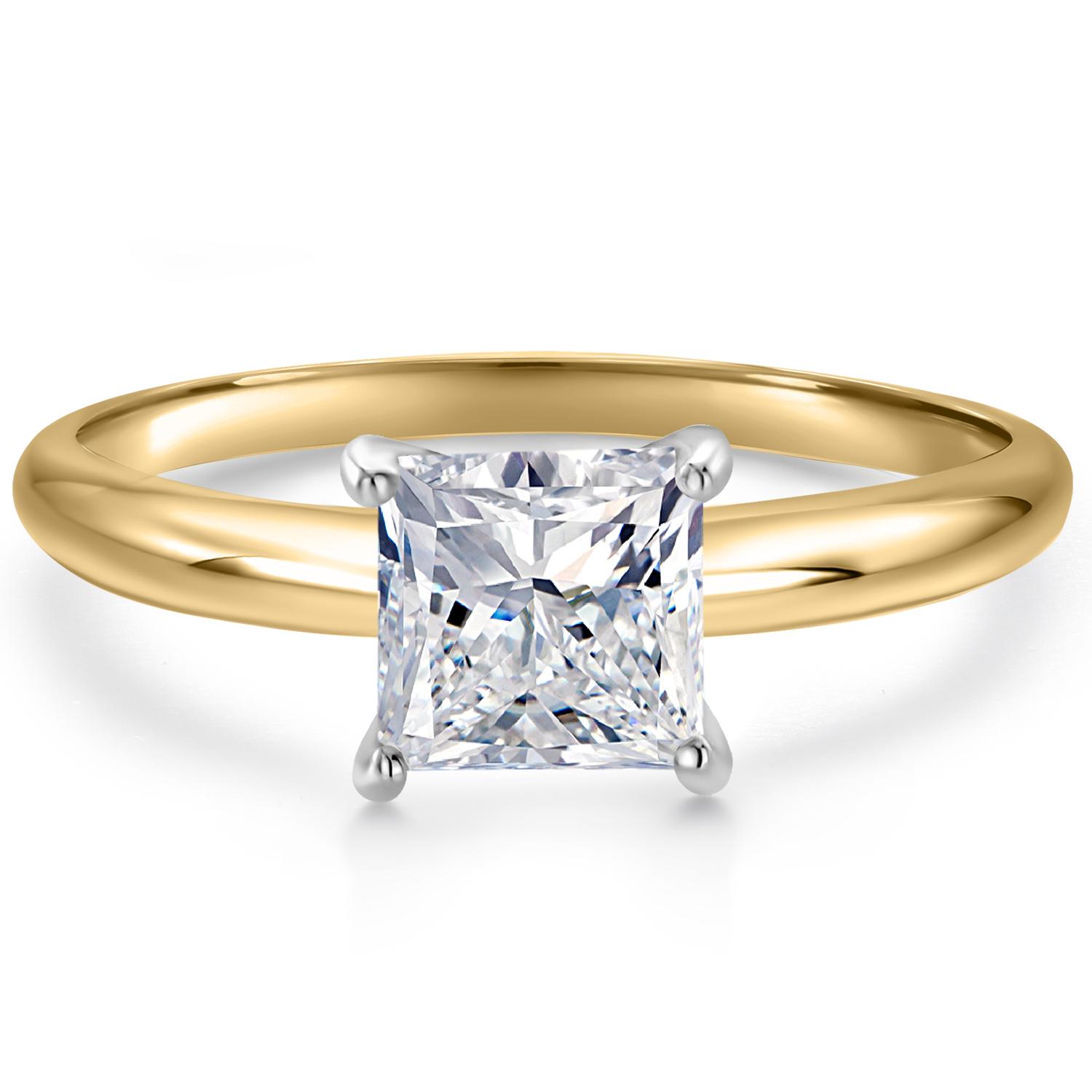 LUXURIOUS 14K TWO-TONE GOLD SETTING WITH TIMELESS DESIGN: Crafted from premium 14K two-tone gold, this ring features a yellow gold band paired with a white gold head, offering a unique and stylish contrast. The yellow gold band adds warmth and classic elegance, while the white gold head enhances the diamond's brilliance. The solitaire setting is meticulously designed to prominently showcase your chosen diamond, highlighting its shape and sparkle.
