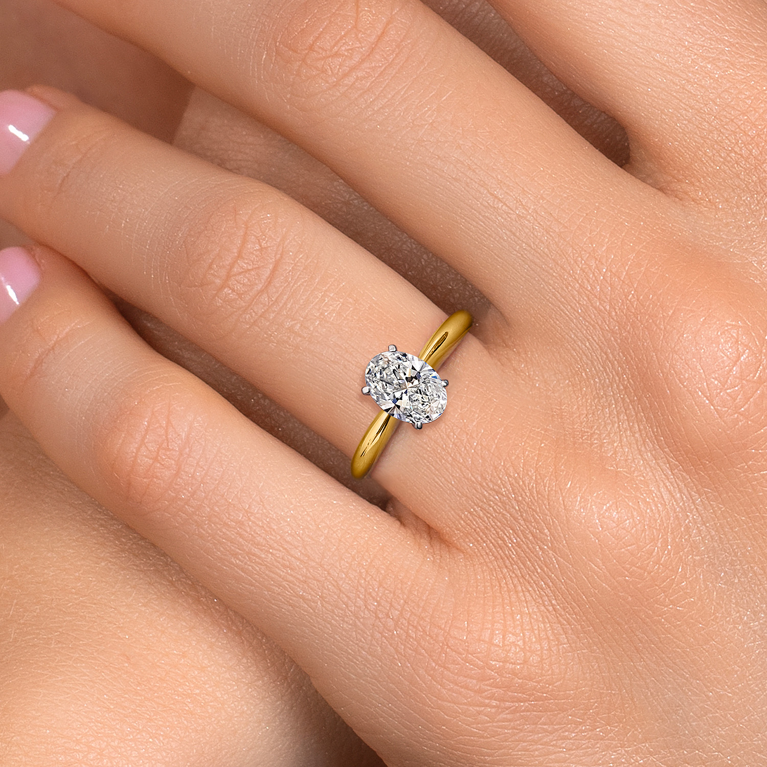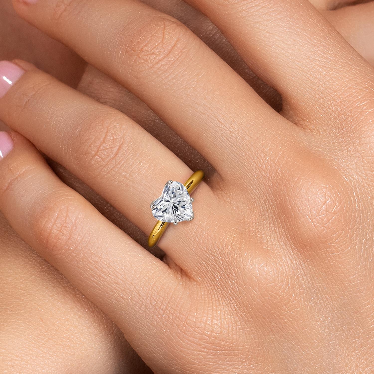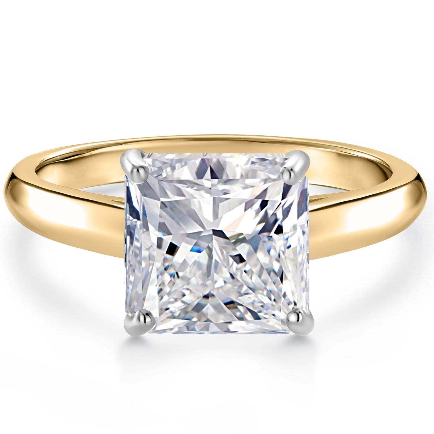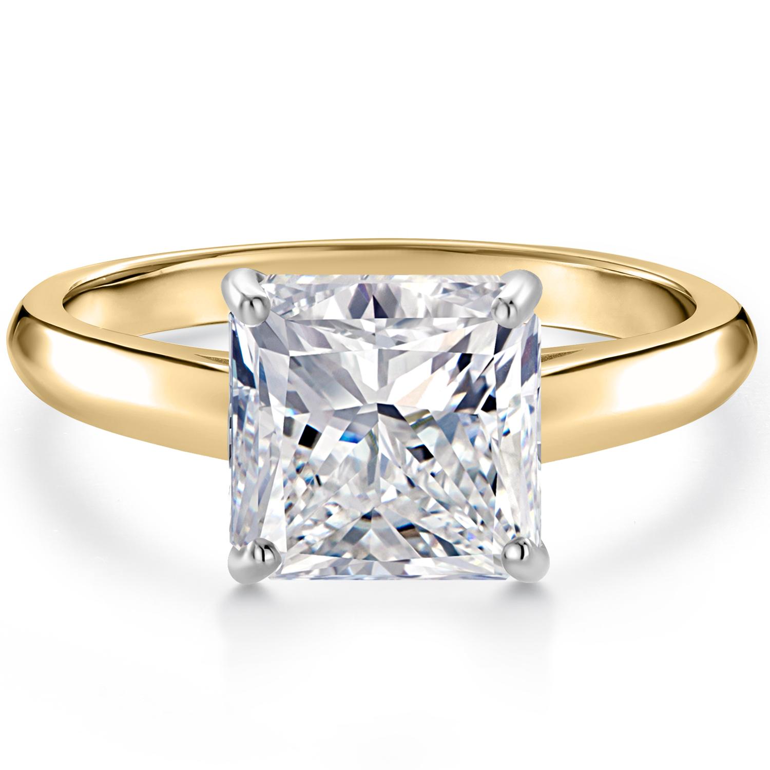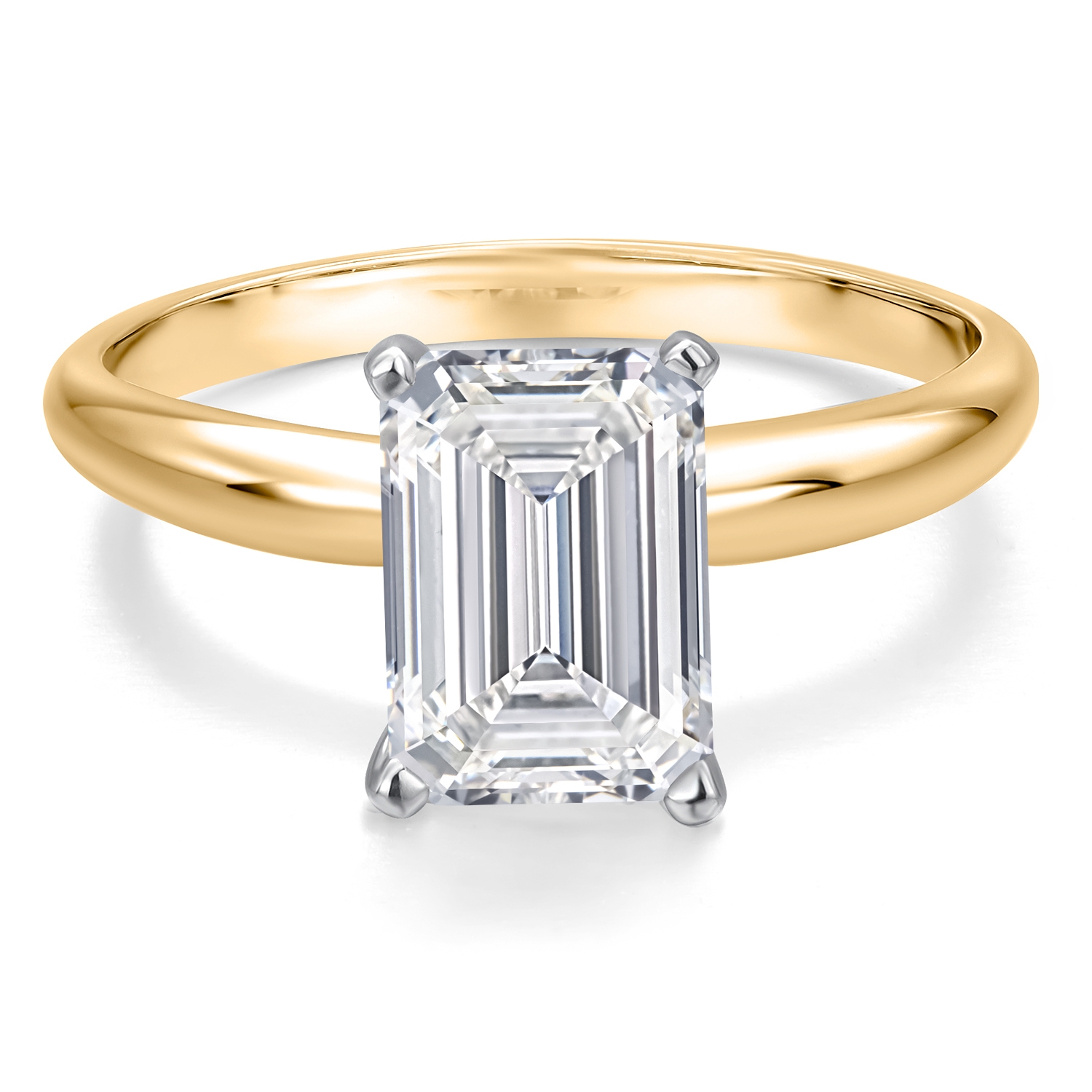 LUXURIOUS 14K TWO-TONE GOLD SETTING WITH TIMELESS DESIGN: Crafted from premium 14K two-tone gold, this ring features a yellow gold band paired with a white gold head, offering a unique and stylish contrast. The yellow gold band adds warmth and classic elegance, while the white gold head enhances the diamond's brilliance. The solitaire setting is meticulously designed to prominently showcase your chosen diamond, highlighting its shape and sparkle.