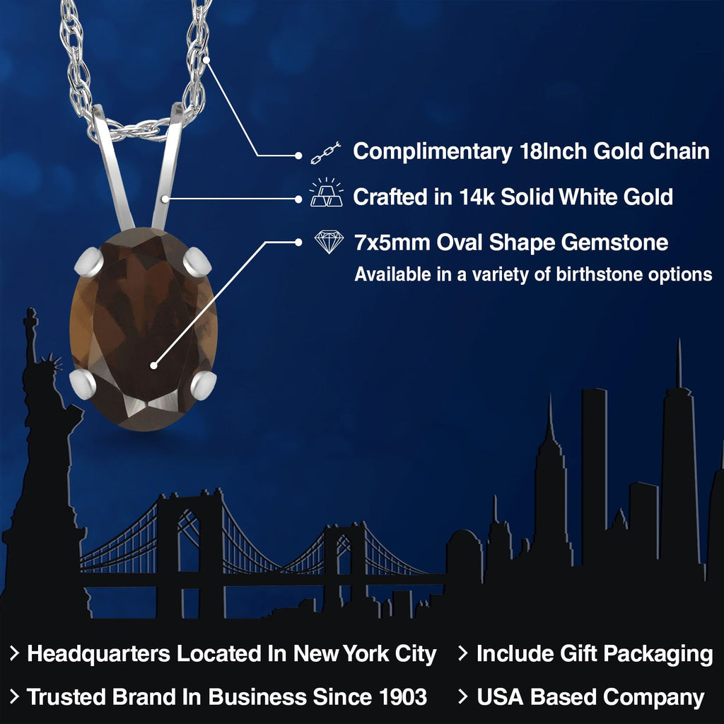 0.75 Ct Oval Brown Smoky Quartz 14K White Gold Pendant with Chain