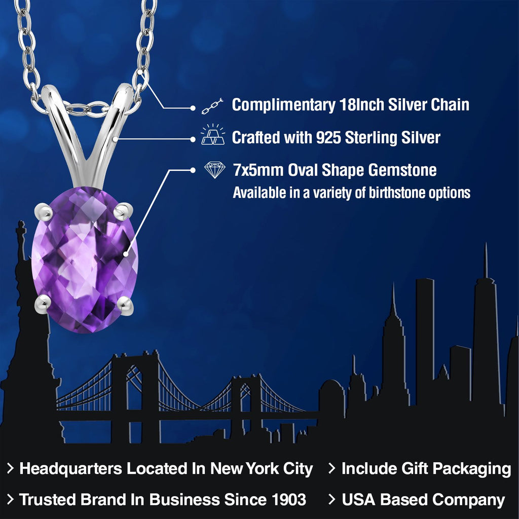 0.75 Ct Oval Checkerboard Purple Amethyst 925 Sterling Silver Pendant with Chain