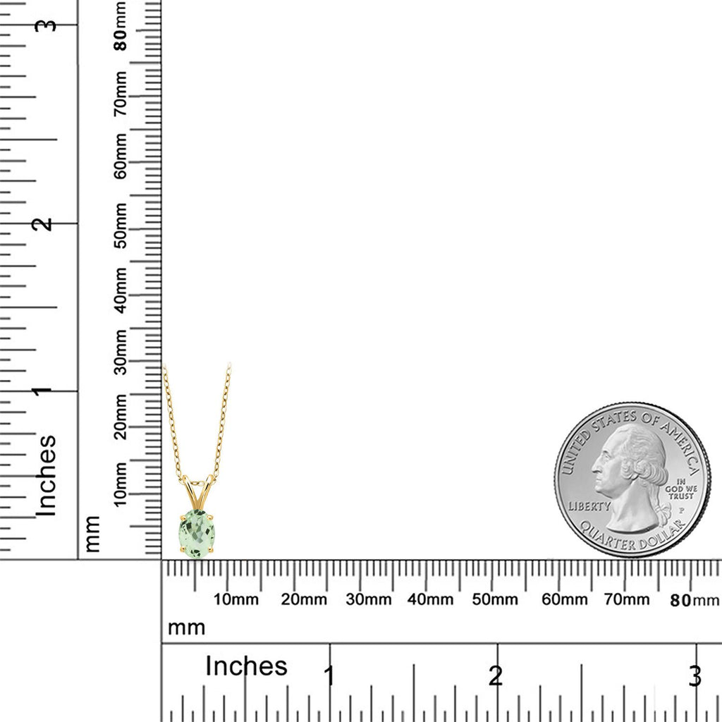 0.75 Ct Oval Green Prasiolite 18K Yellow Gold Plated Silver Pendant with Chain