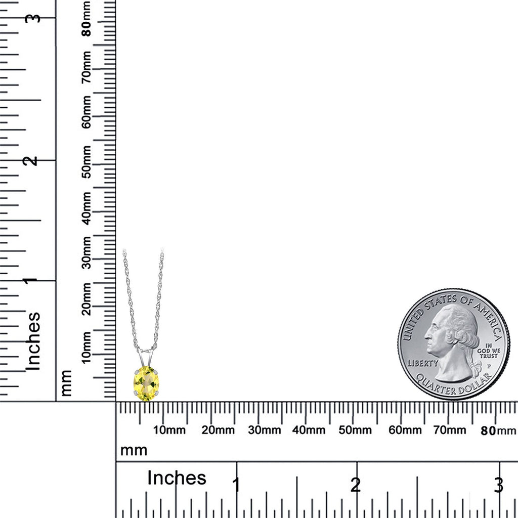 0.80 Ct Oval Canary Mystic Topaz 14K White Gold Pendant with Chain