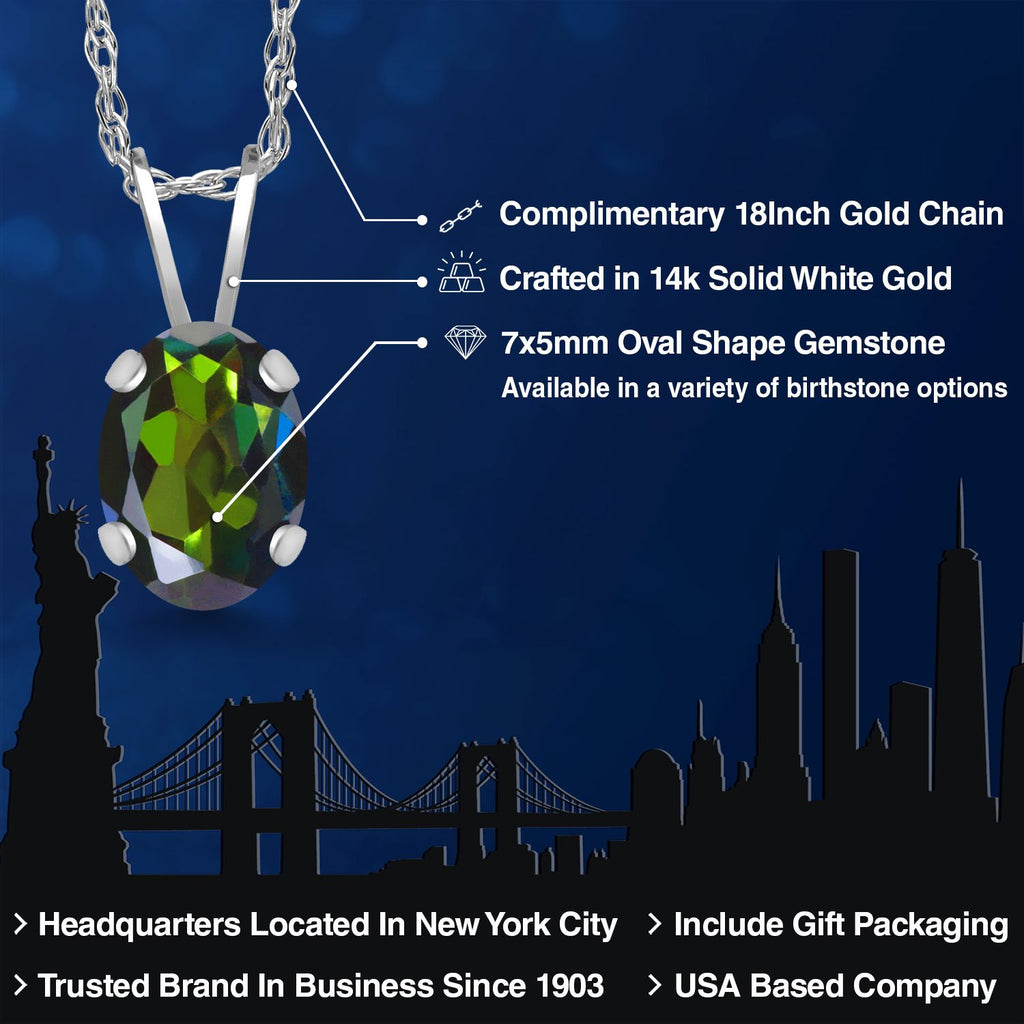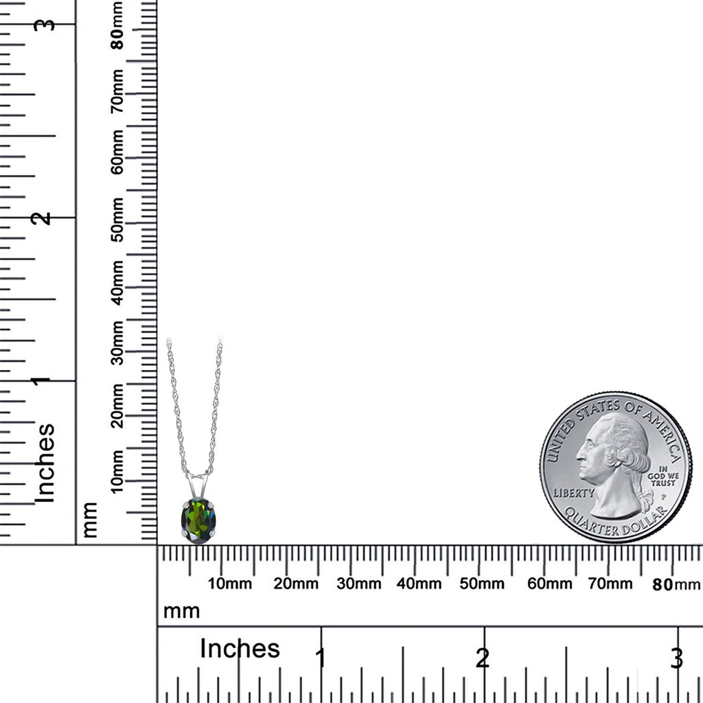 0.80 Ct Oval Green Mystic Topaz 14K White Gold Pendant with Chain