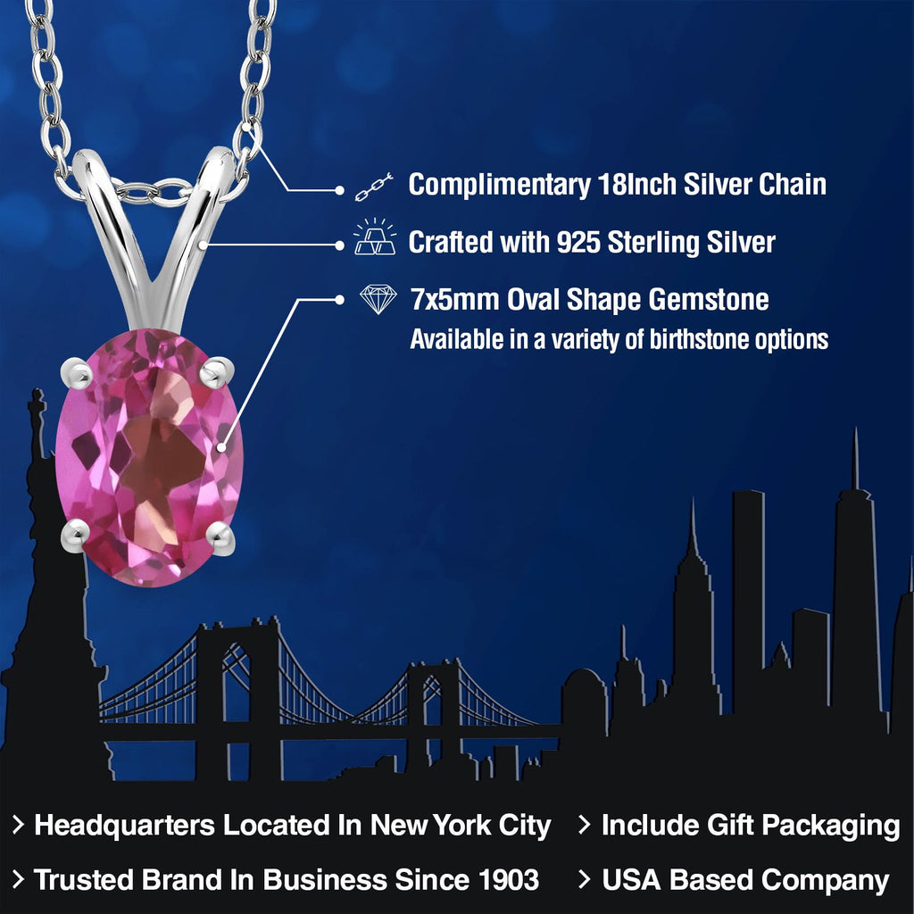 0.80 Ct Oval Pink Mystic Topaz 925 Sterling Silver Pendant with Chain