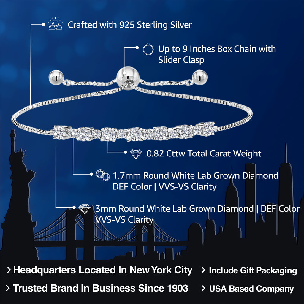 0.82 Ct Round White Lab Grown Diamond 925 Sterling Silver Bracelet