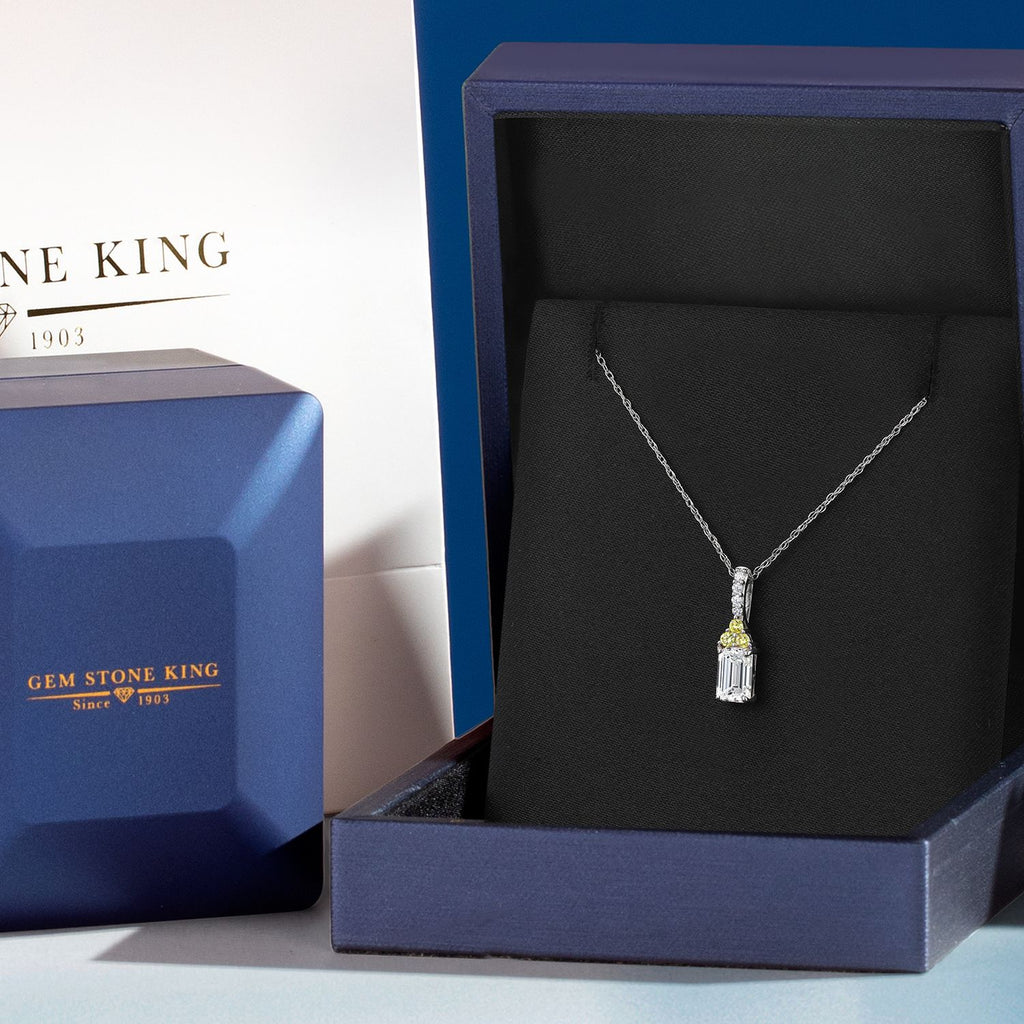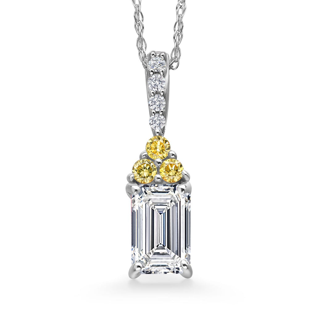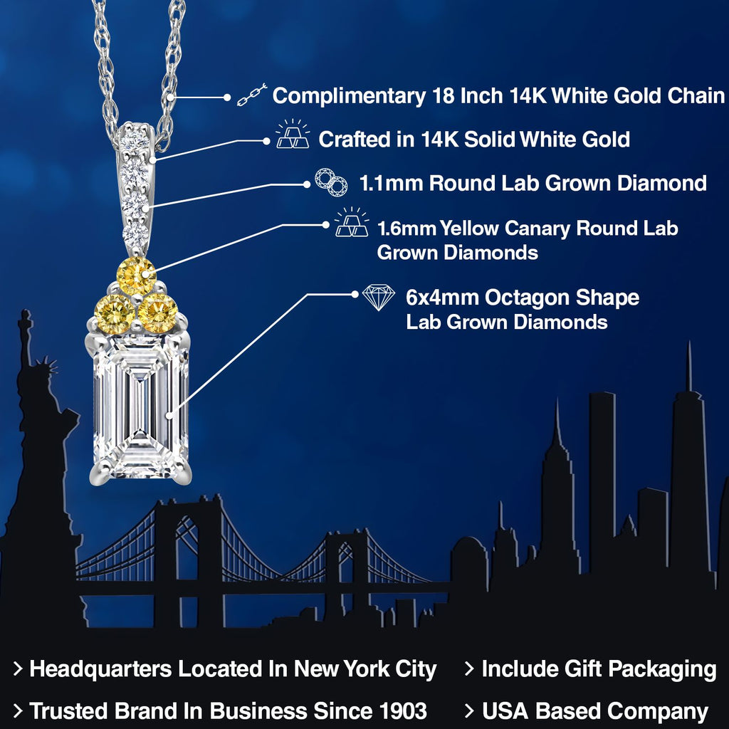 0.83 Cttw Emerald Cut 14K White Gold IGI Certified and Canary Lab Grown Diamond Pendant Necklace | 0.75 Ct Emerald Cut E-F Color | VS1-VS2 Clarity | Gold Necklace For Women | With 18 Inch Gold Chain
