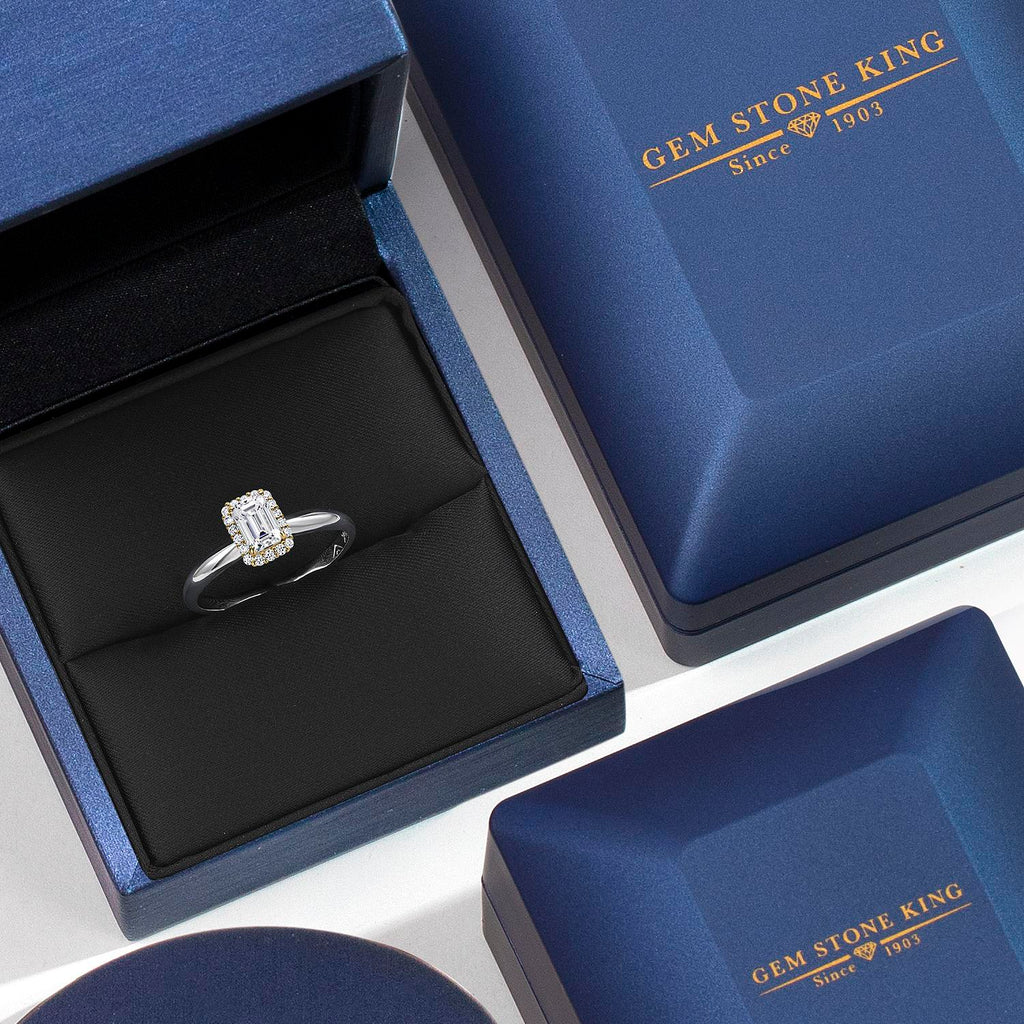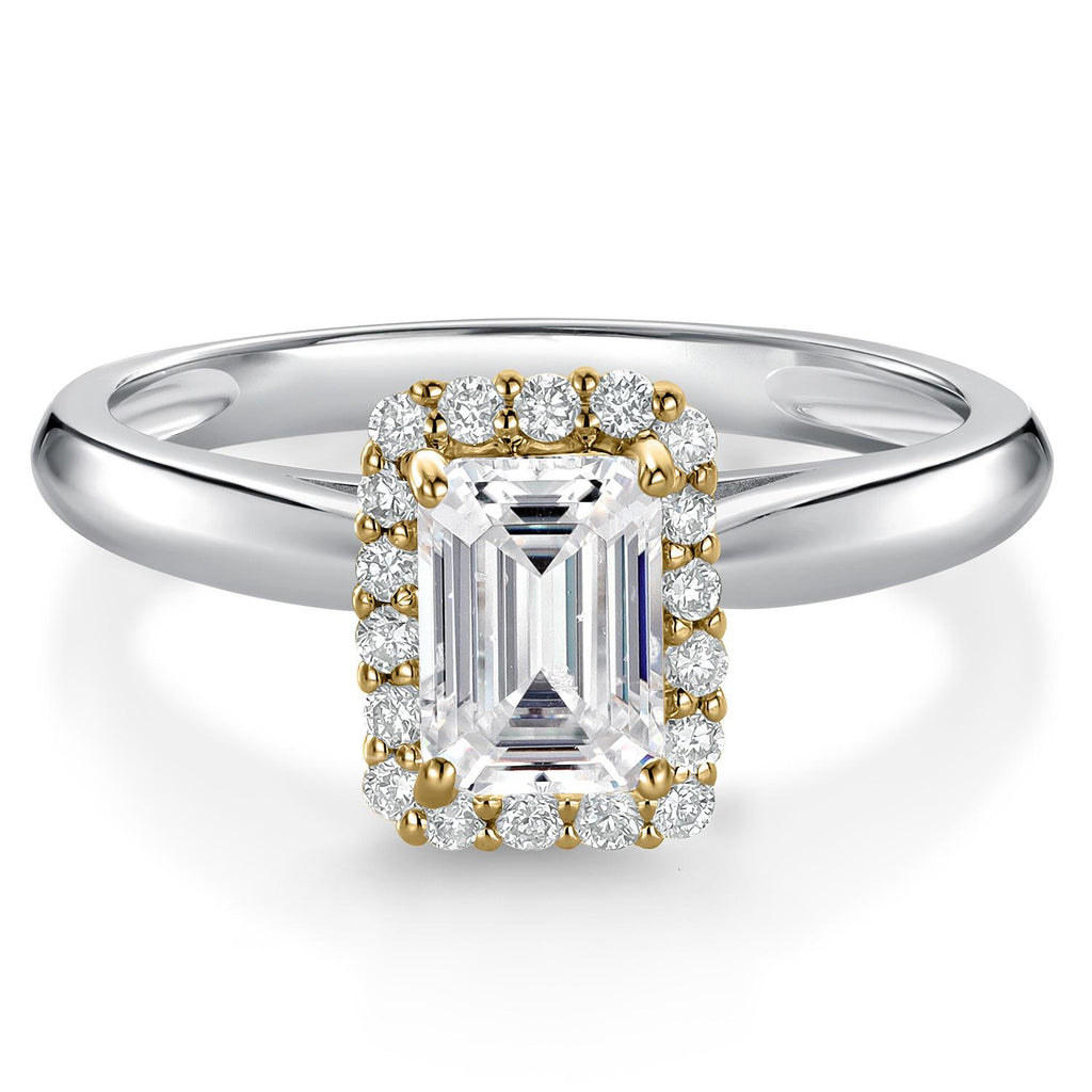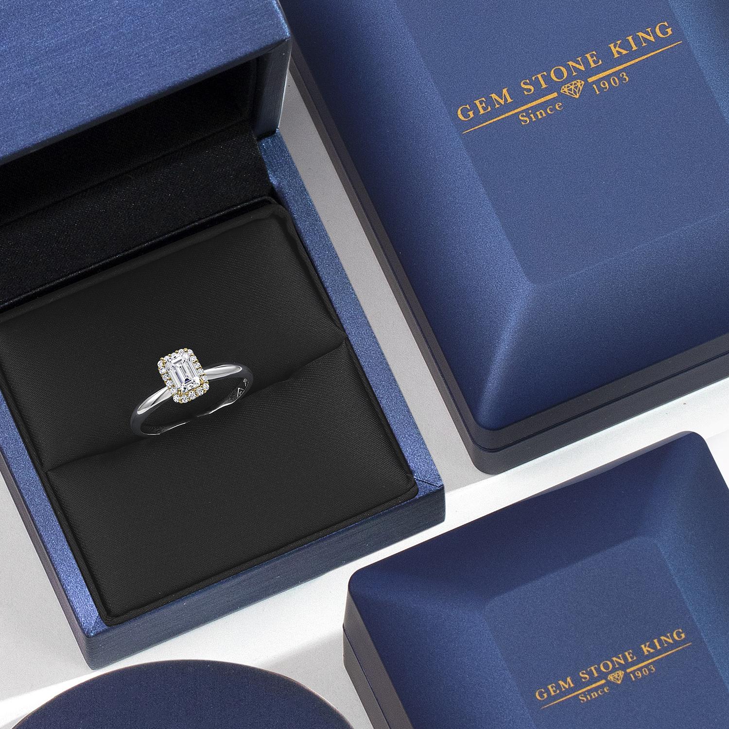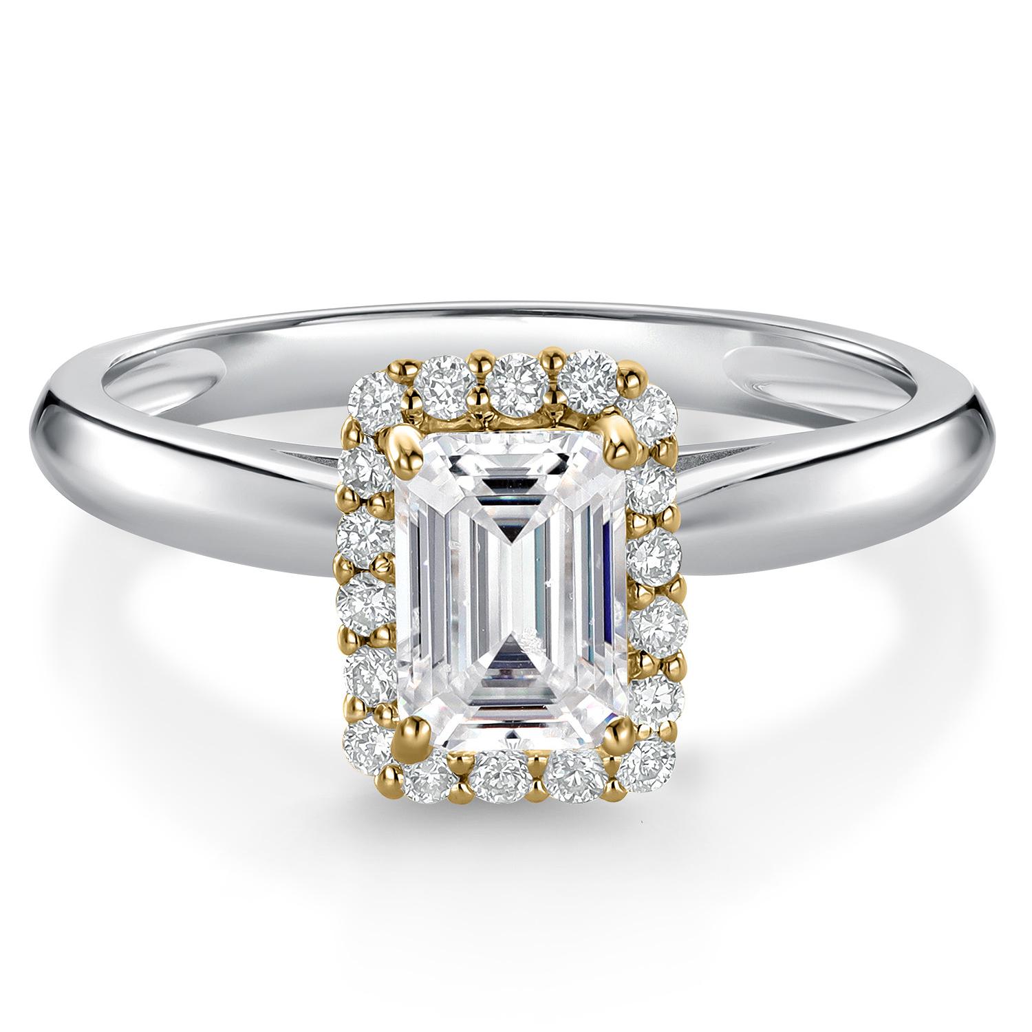 0.84 Cttw IGI Certified Lab Grown Diamond in 925 Silver and 10K Yellow Gold Engagement Ring for Women | Emerald Cut Center Diamond 0.70 Ct | E-F Color | VS1-VS2 Clarity