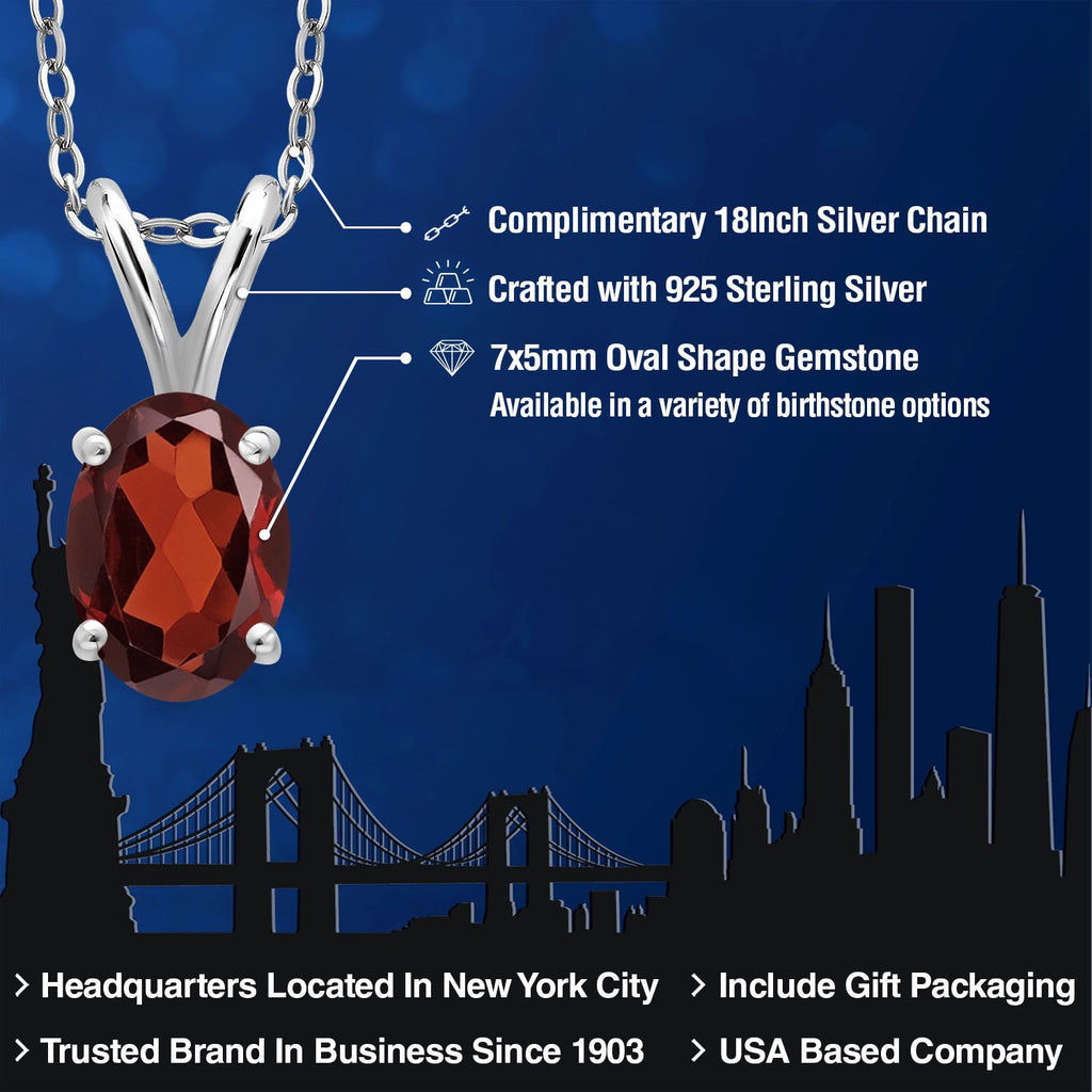 0.87 Ct Oval Red Garnet 925 Sterling Silver Pendant with Chain