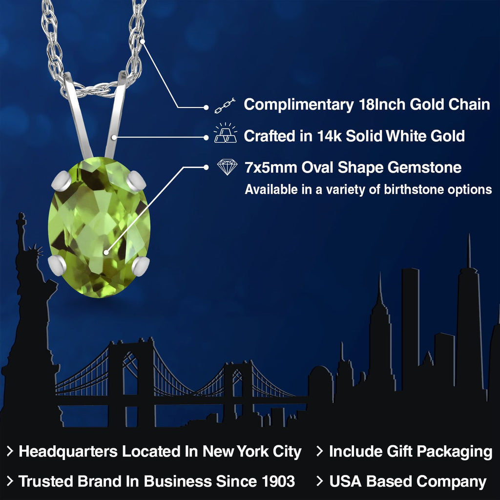 0.90 Ct Oval Green Peridot 14K White Gold Pendant with Chain