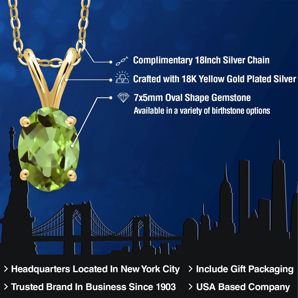 0.90 Ct Oval Green Peridot 18K Yellow Gold Plated Silver Pendant with Chain