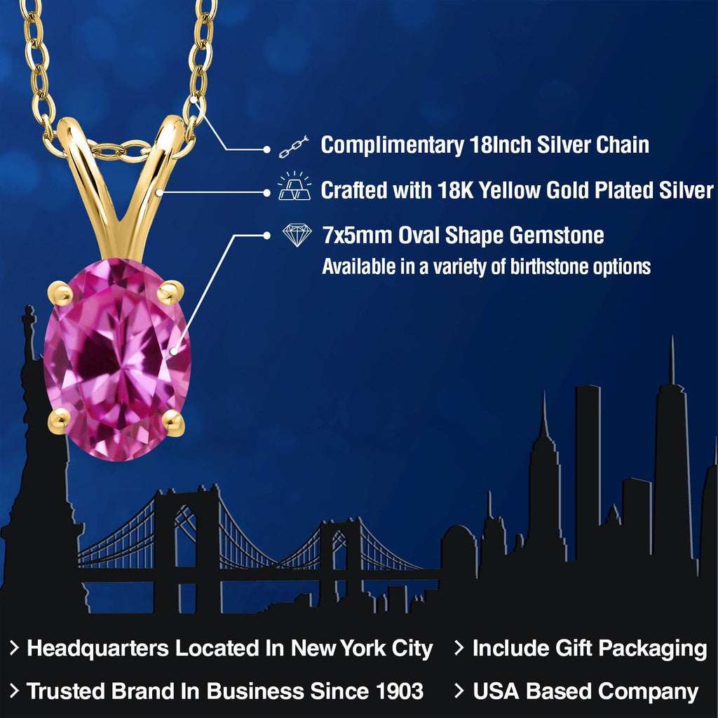 0.90 Ct Oval Pink Created Sapphire 18K Yellow Gold Plated Silver Pendant with Chain