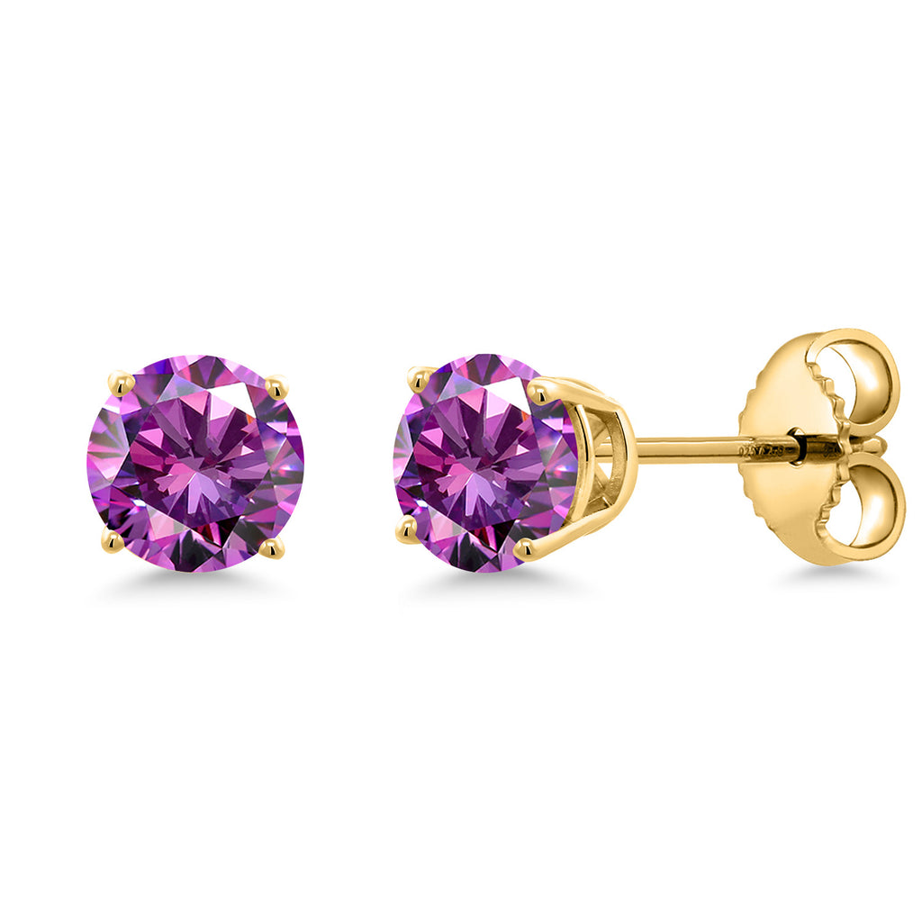 0.92 Ct Round 5mm Fancy Purple Zirconia 18K Yellow Gold Plated Silver Stud Earrings