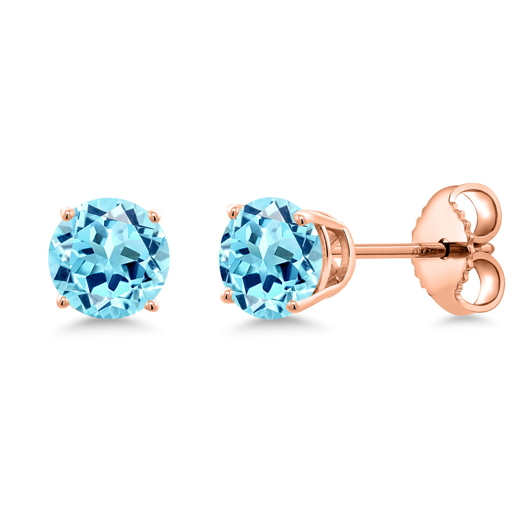 0.99 Ct Round 5mm Blue Apatite 18K Rose Gold Plated Silver Stud Earrings