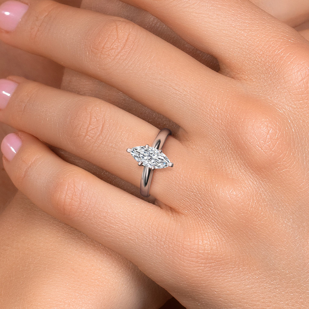 TIMELESS SOLITAIRE ELEGANCE: This stunning engagement ring features a breathtaking 1.00 Ct marquise-cut IGI-certified lab-grown diamond, set in polished 10K white gold for a refined and sophisticated look that never goes out of style.