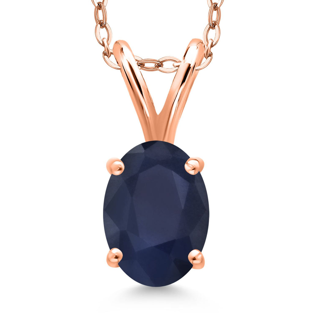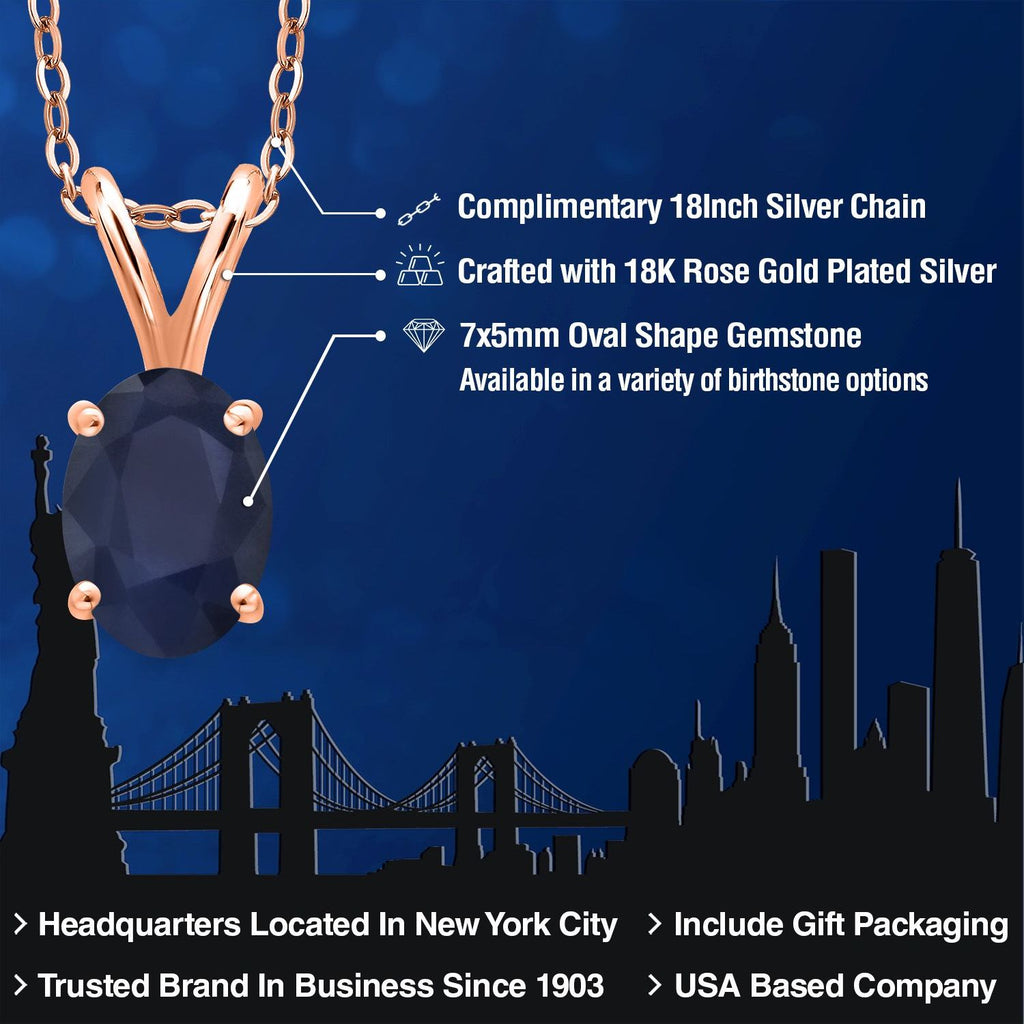 1.00 Ct Oval Blue Sapphire 18K Rose Gold Plated Silver Pendant with Chain