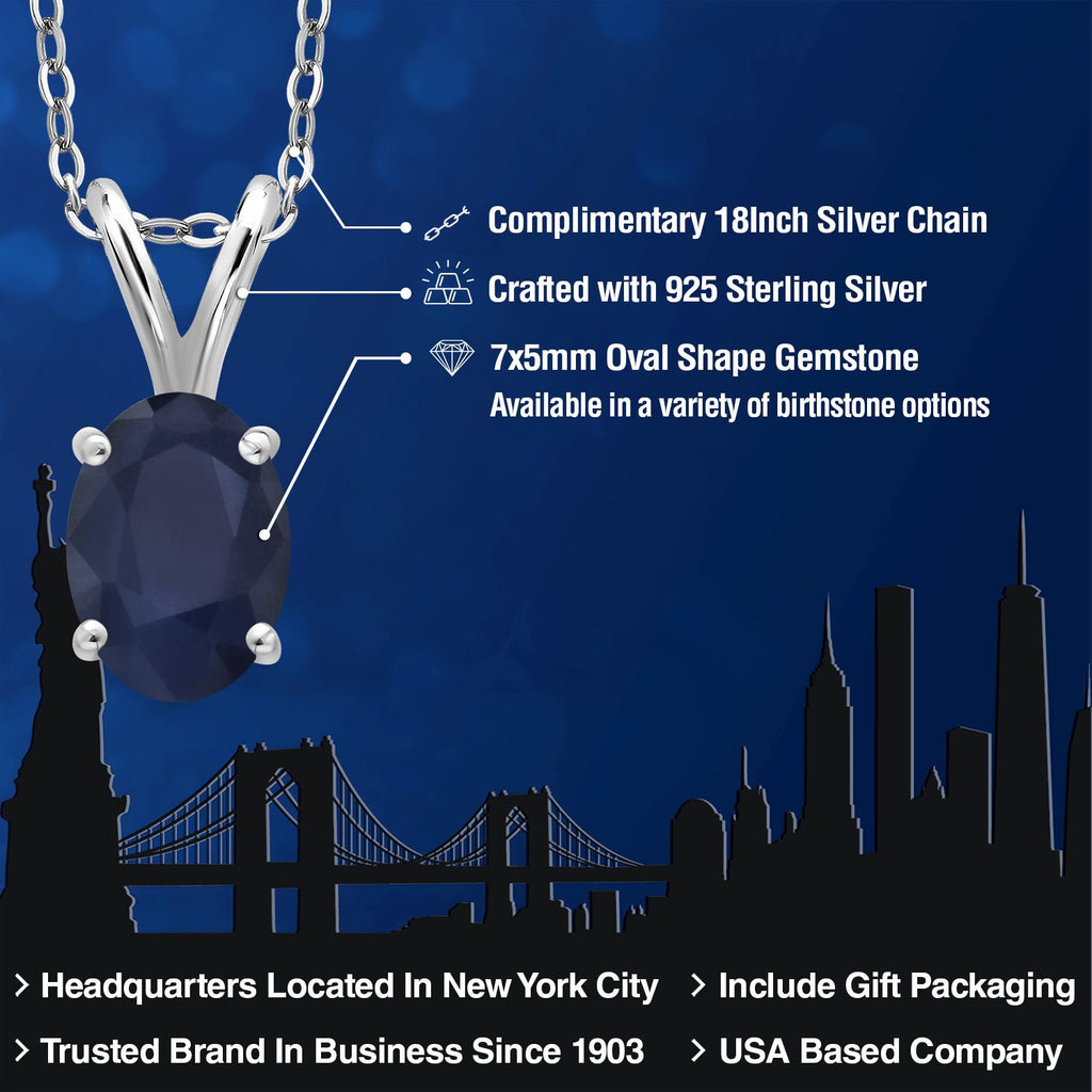 1.00 Ct Oval Blue Sapphire 925 Sterling Silver Pendant with Chain