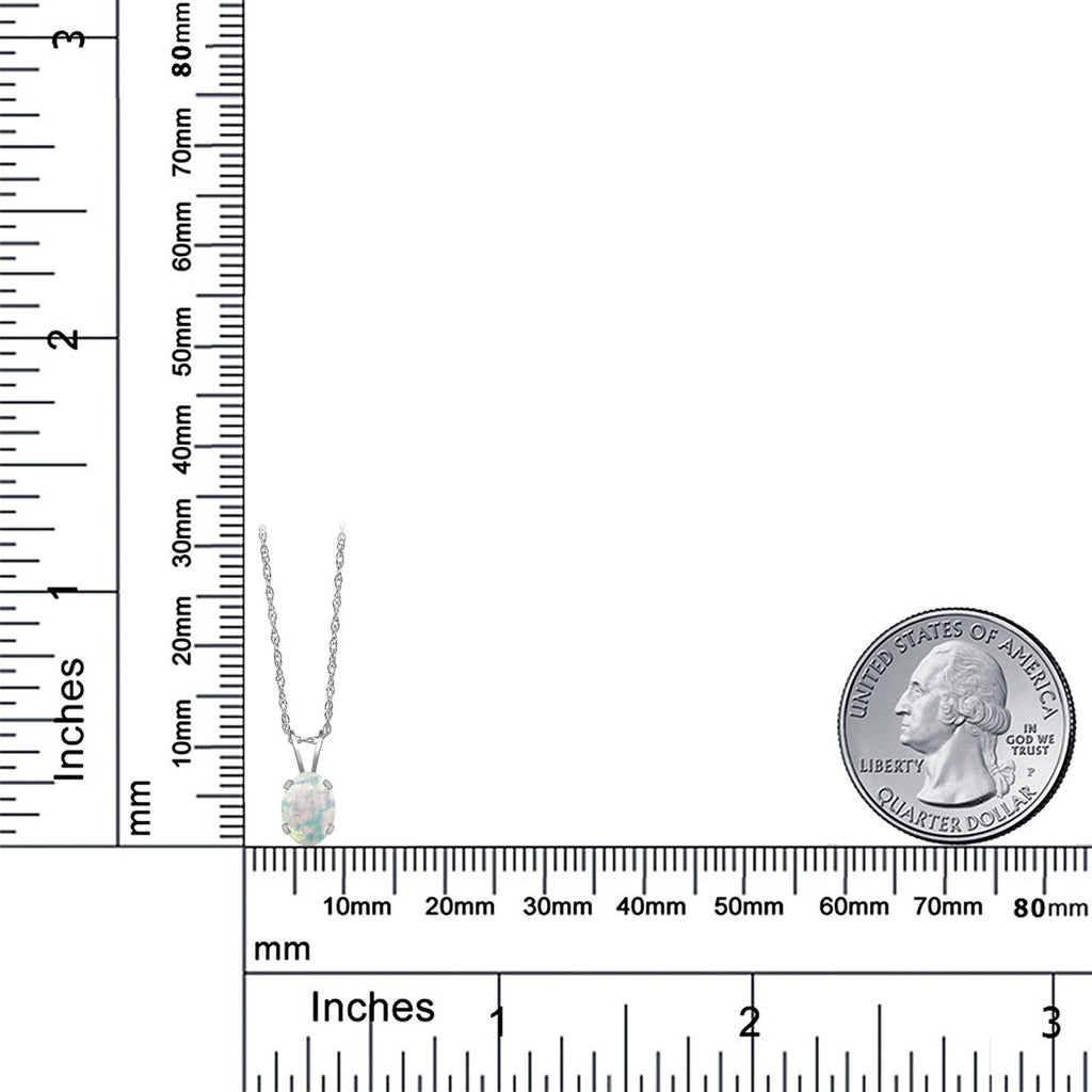 1.00 Ct Oval Cabochon White Simulated Opal 14K White Gold Pendant with Chain