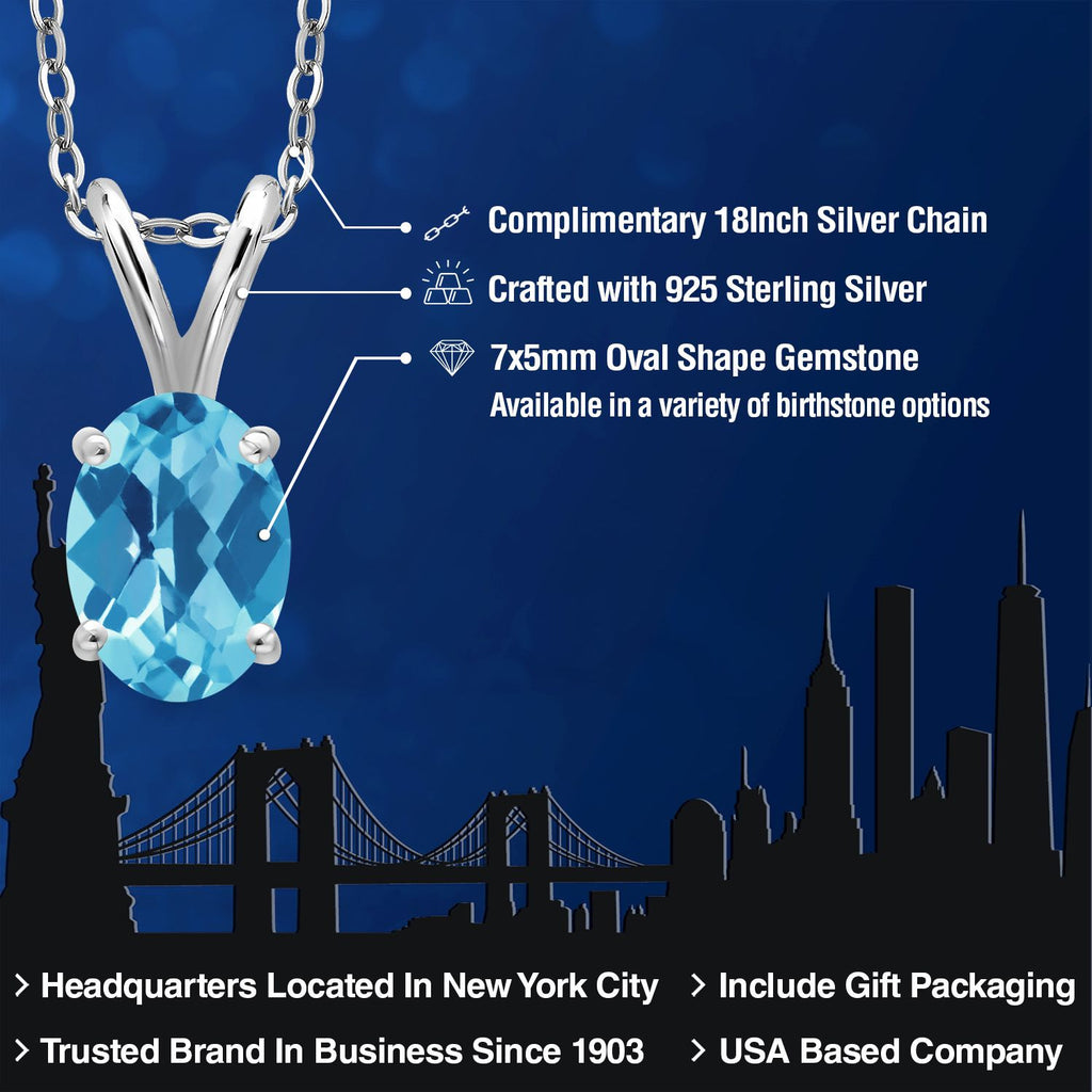 1.00 Ct Oval Checkerboard Swiss Blue Topaz 925 Sterling Silver Pendant with Chain