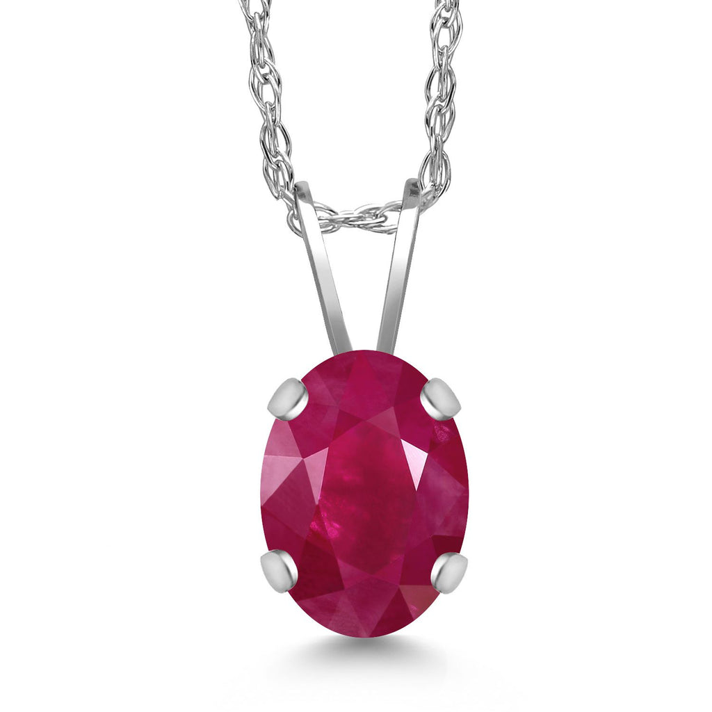 1.00 Ct Oval Red Ruby 14K White Gold Pendant with Chain