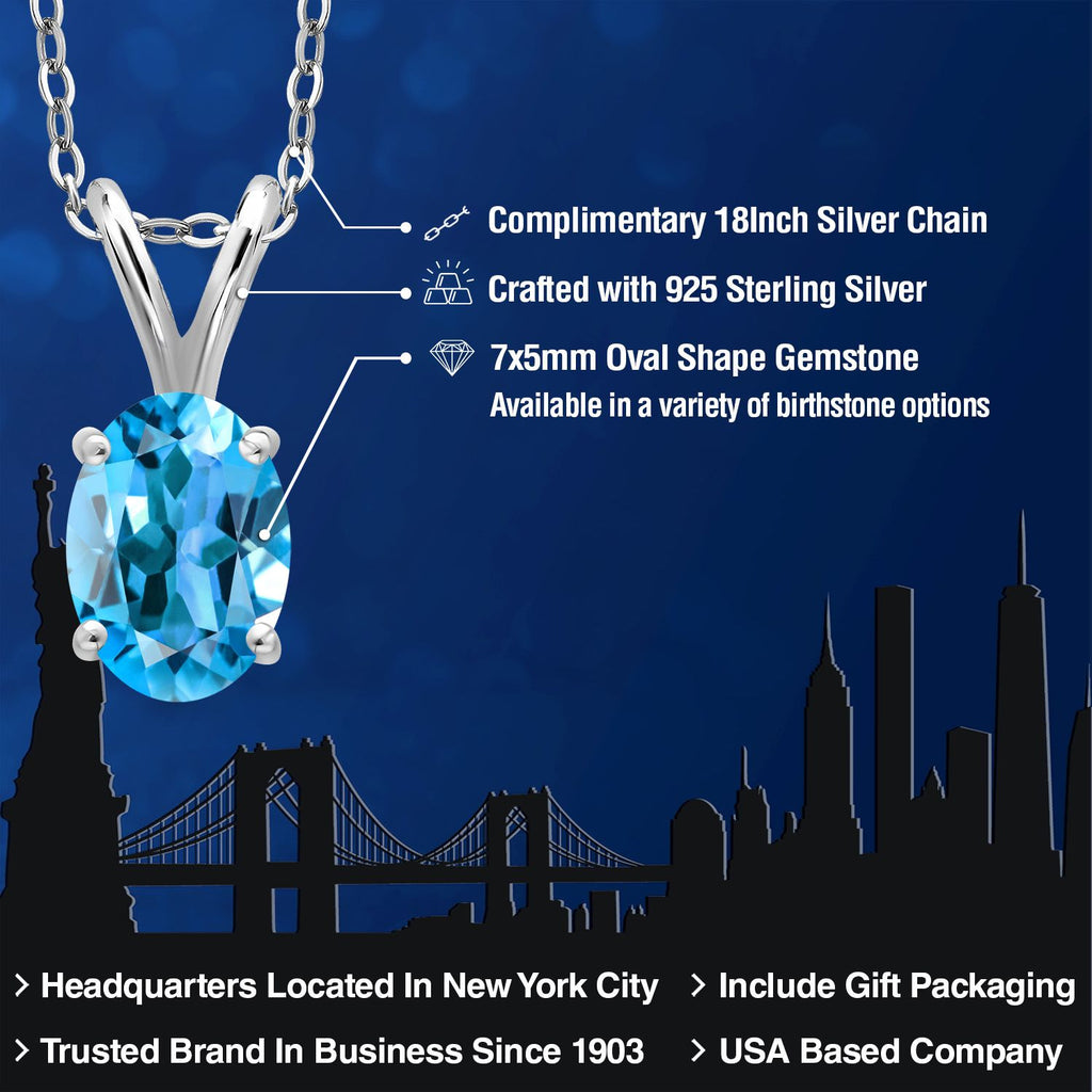 1.00 Ct Oval Swiss Blue Topaz 925 Sterling Silver Pendant with Chain