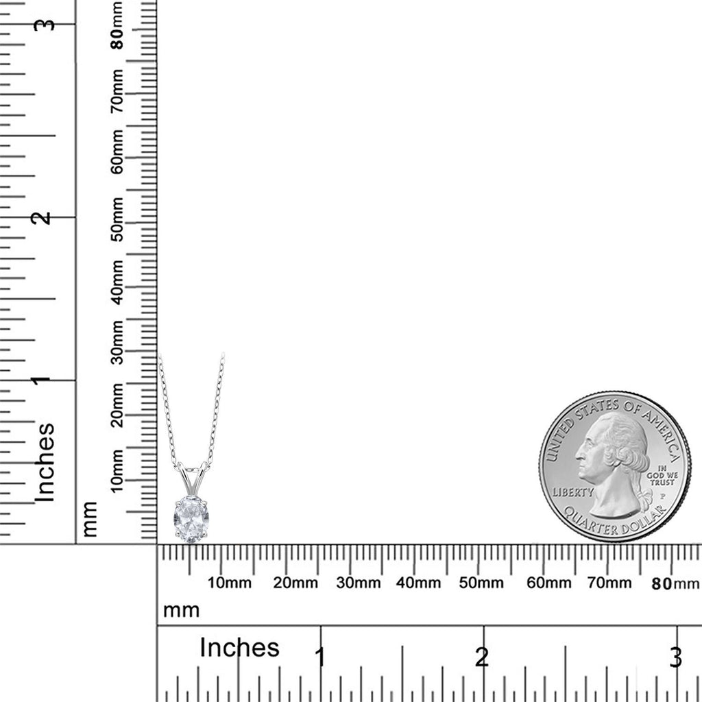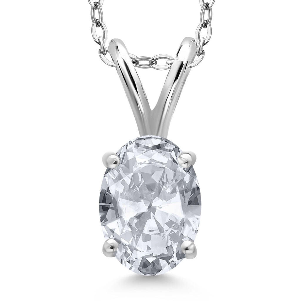1.00 Ct Oval White Topaz 925 Sterling Silver Pendant with Chain