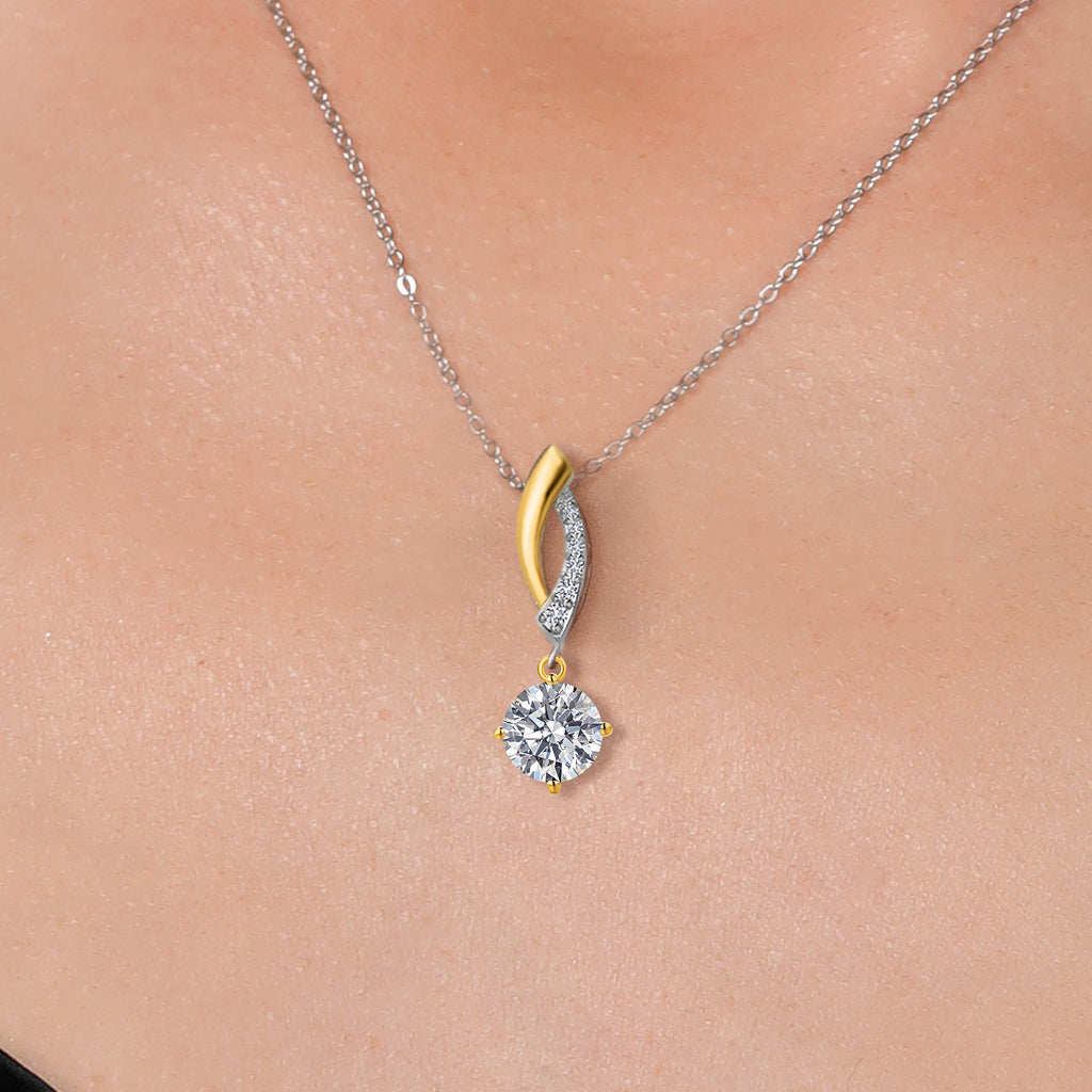 1.03 Cttw IGI Certified Lab Grown Diamond in 925 Silver and 10K Yellow Gold Pendant for Women | Round Center Diamond 1.00 Ct | E-F Color | VS1-VS2 Clarity | Gold Necklace for Women | 18 Inch Silver Chain