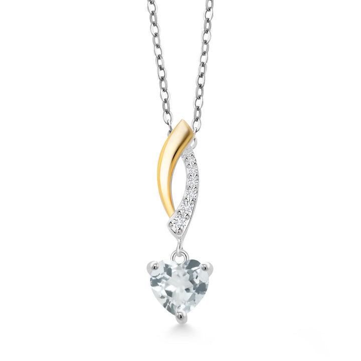 6MM Heart Shape Gemstone Birthstone and Lab Grown Diamond 2-Tone Pendant Necklace for Women | 925 Silver and 10K Yellow Gold | With 18 Inch Chain | Fine Jewelry Gifts for Her Mom Women Wife