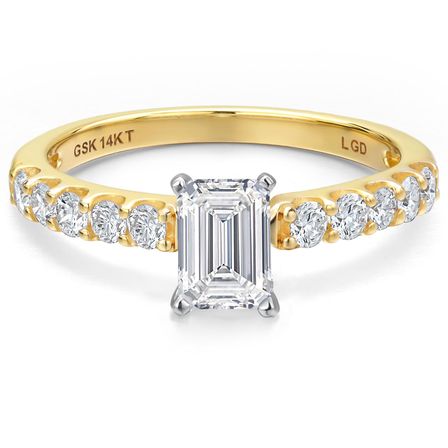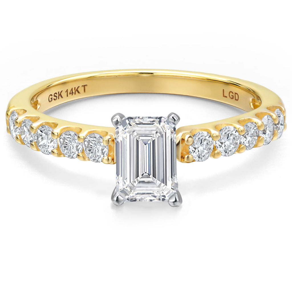 1.08 Cttw IGI Certified Lab Grown Diamond in 14K Two-Tone Gold Engagement Ring for Women | Emerald Cut Center Diamond 0.70 Ct | E-F Color | VS1-VS2 Clarity
