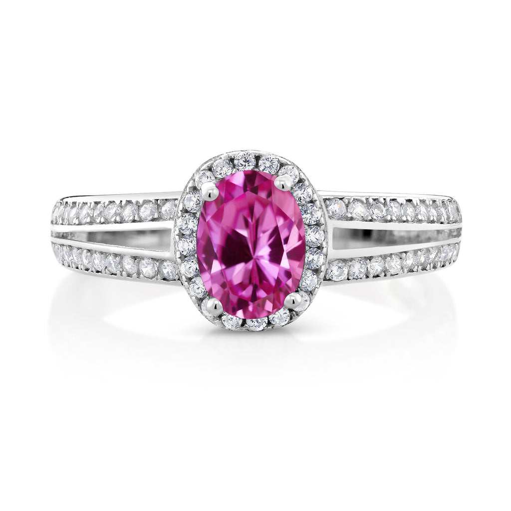 MEASUREMENTS: 7x5mm Oval Heat-Treated Pink Created Sapphire, 1x1mm Round White Zirconia. Total Carat Weight is 1.5 cttw