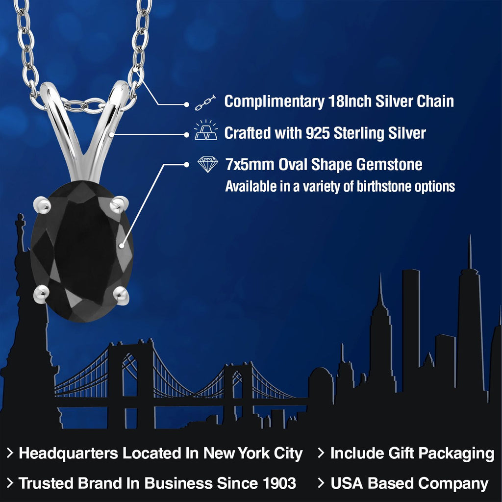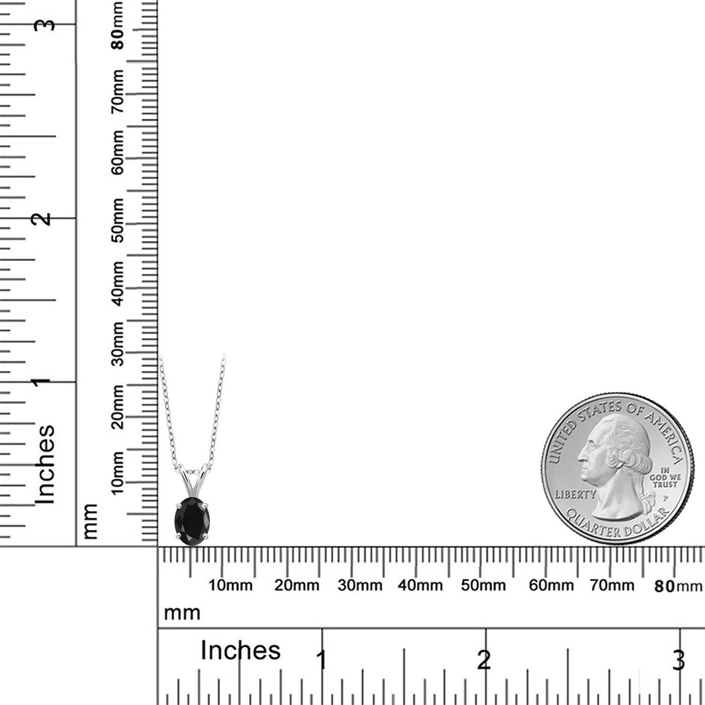 1.10 Ct Oval Black Sapphire 925 Sterling Silver Pendant with Chain