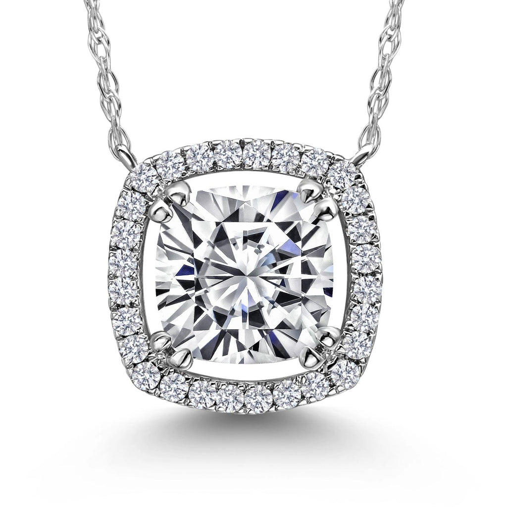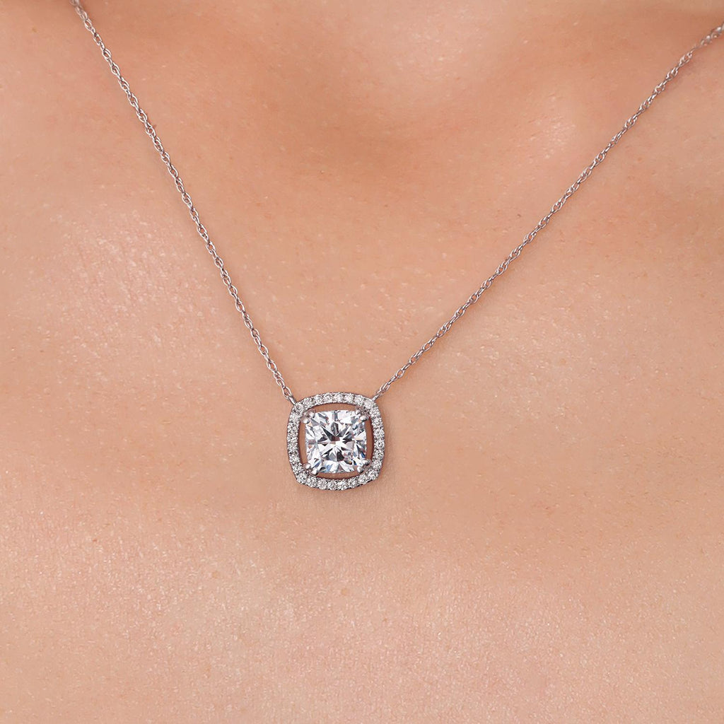 1.11 Cttw 10K White Gold IGI Certified Lab Grown Diamond Pendant Necklace | Center Cushion Diamond 1 Ct | F-G Color | VS Clarity | Gold Necklace For Women | With 18 Inch Chain