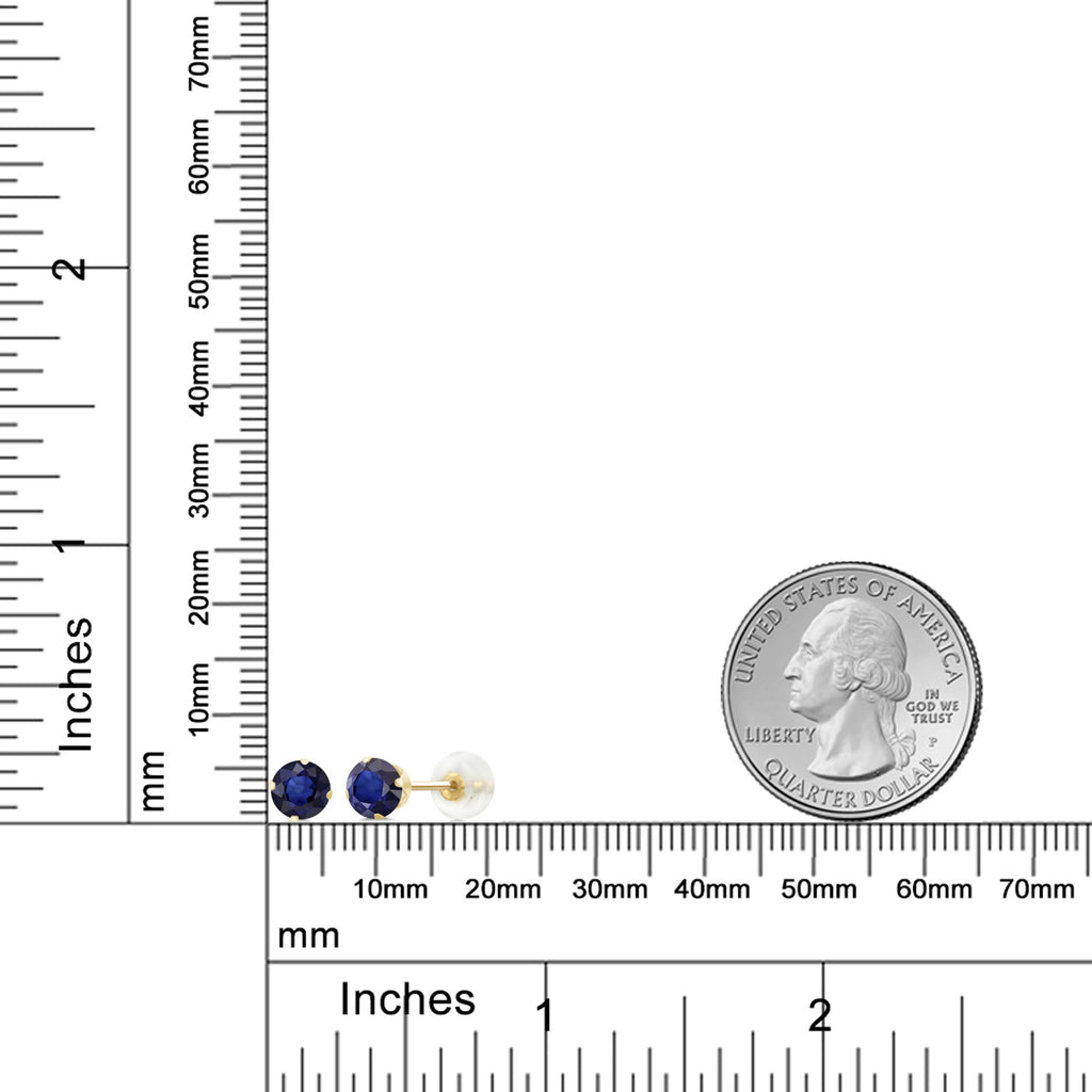 1.12 Ct Round 5mm Blue Sapphire 10K Yellow Gold Stud Earrings For Women Men