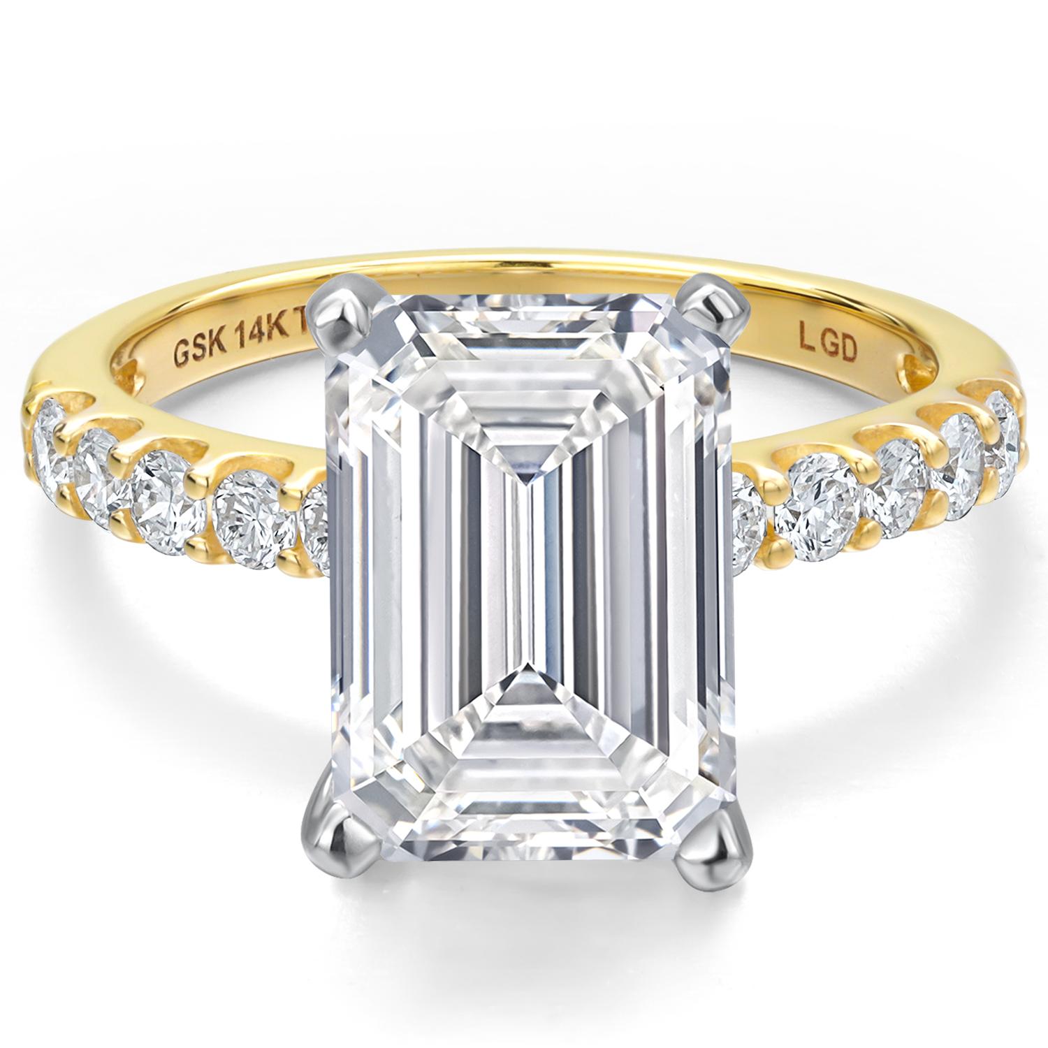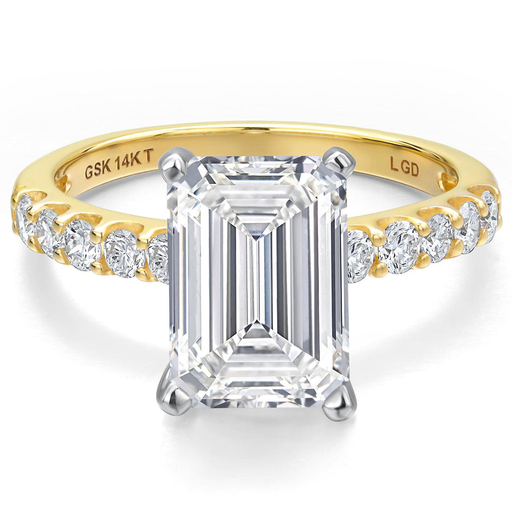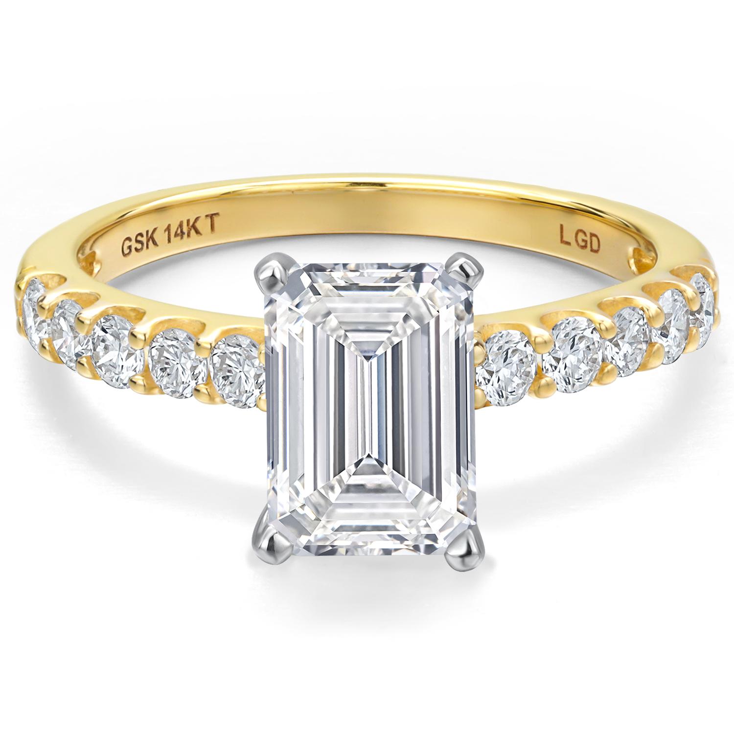 1.13 to 5.38 Cttw IGI Certified Lab Grown Diamond 2-Tone 14K White and Yellow Gold Engagement Wedding Ring for Women | Emerald Cut | E-F Color | VS1-VS2 Clarity